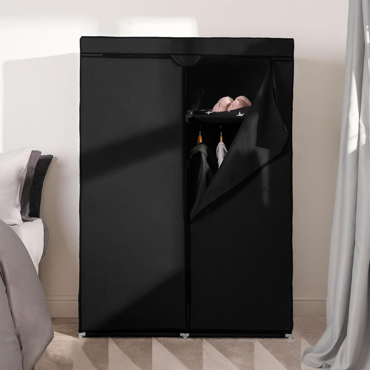 I’m a fan of this black canvas wardrobe for its clean, unfussy lines and lightweight feel - it’s a quick-win for extra hanging space without the bulk of a timber unit. It blends easily into minimalist or industrial schemes, student rooms and small flats where every inch counts. Styling tip: group soft storage boxes or woven baskets on the top shelf to keep lighter items organised, then use colour-coded hangers inside for a neat look. Position by a full-length mirror and layer a slim runner beneath to ground the piece and protect carpet or floorboards.
