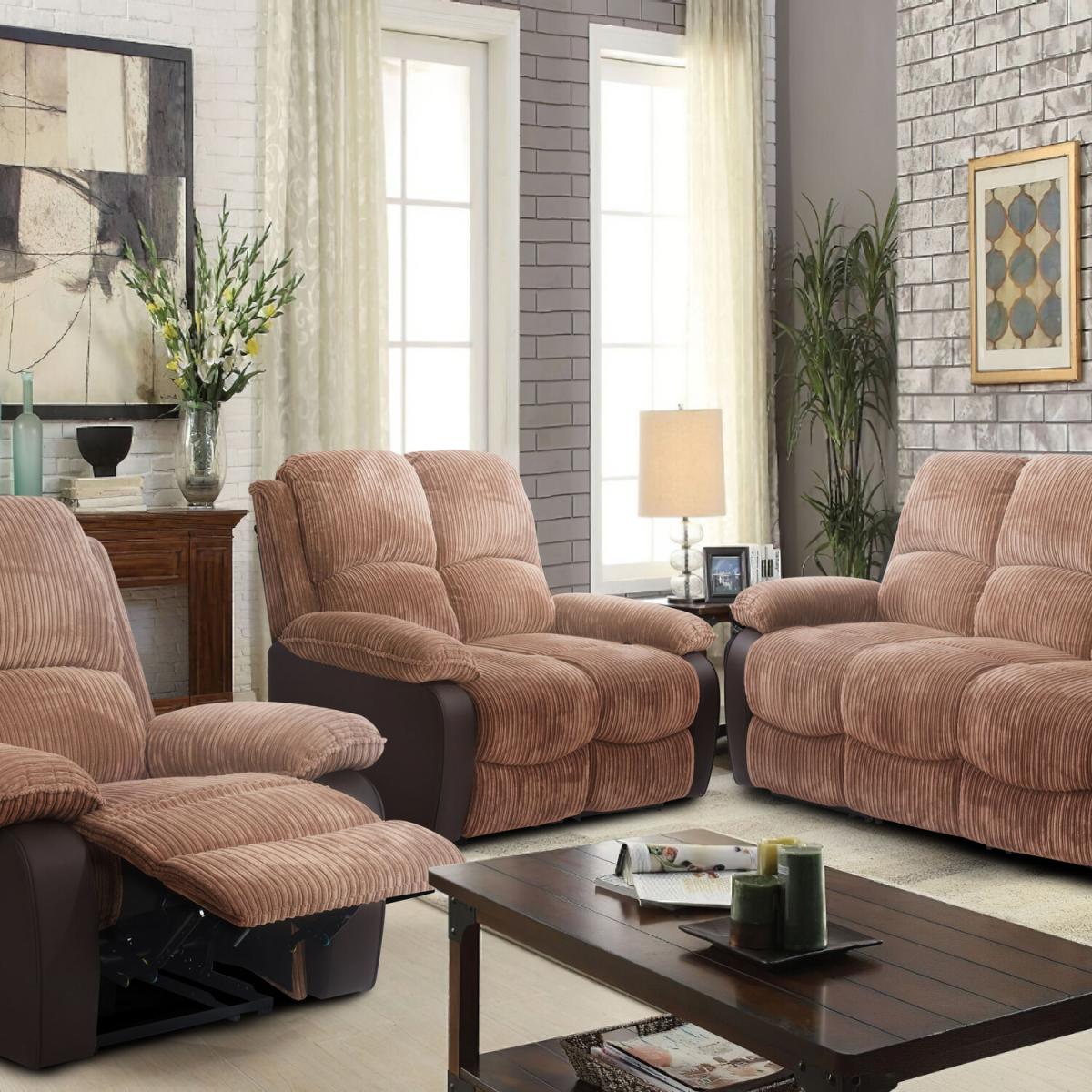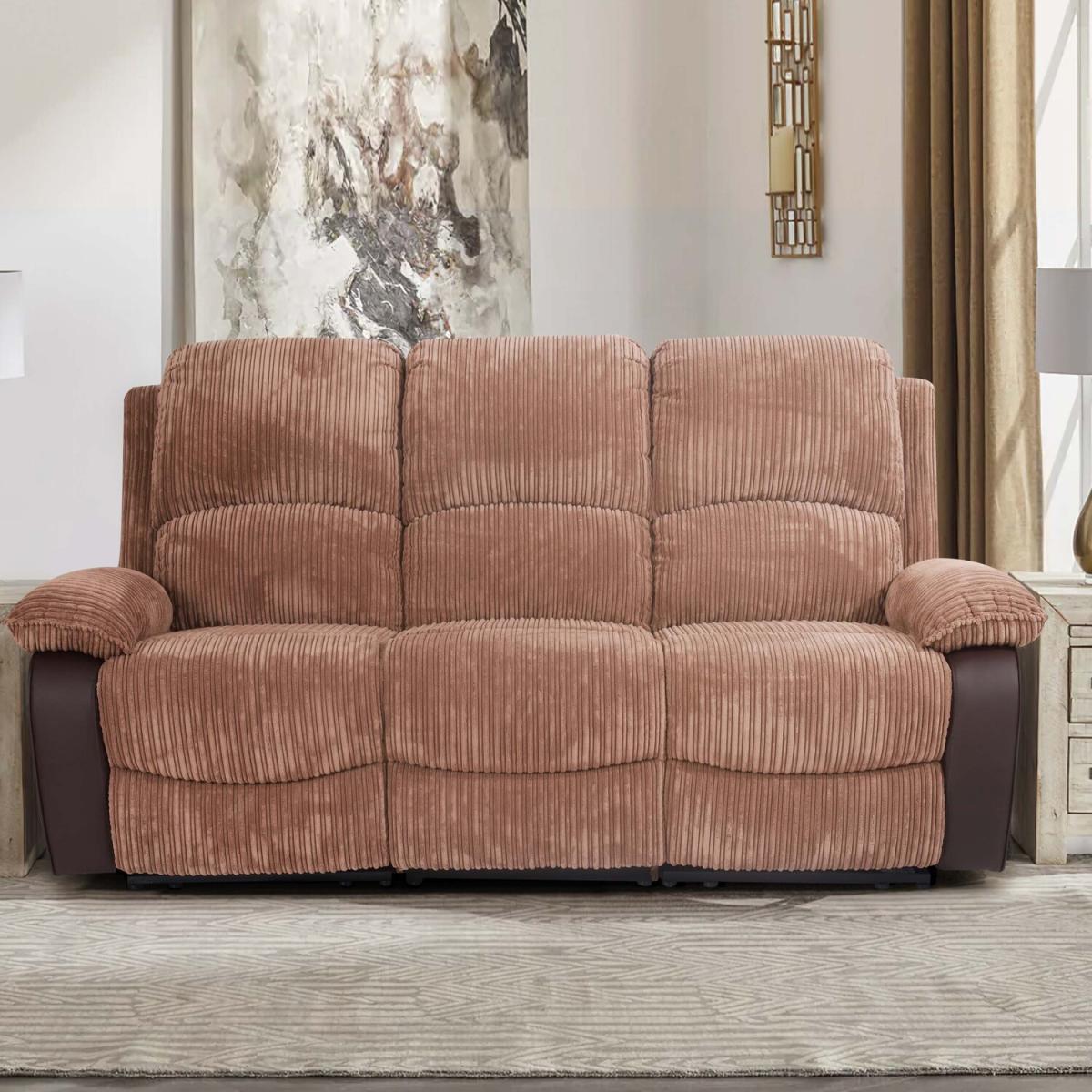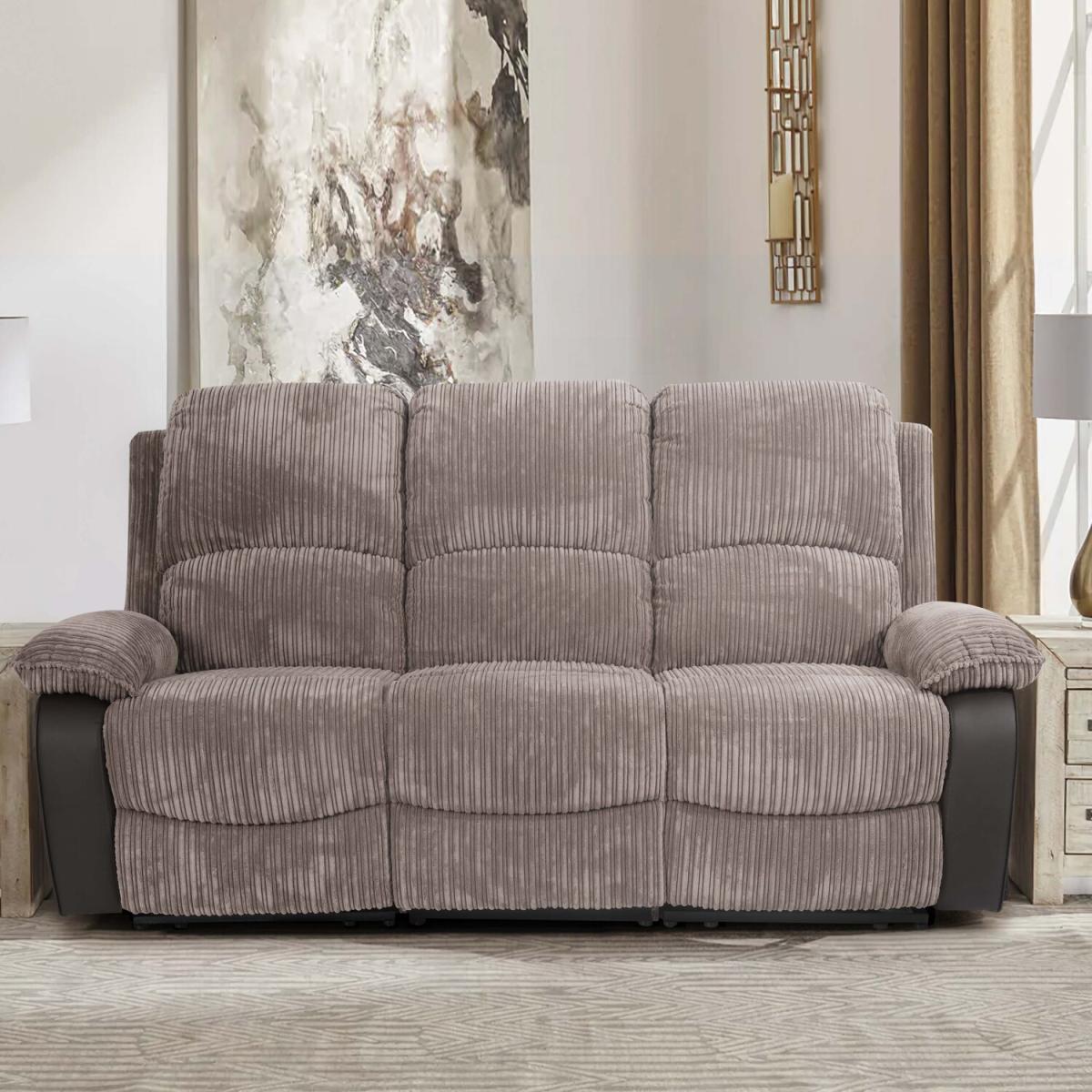 This stylish 3 seater, 2 seater and chair set is upholstered in a jumbo cord fabric and is available in either Grey or Brown. Designed to take relaxation to the next level, the chair can easily transition into a reclined position. And there's contrasting faux leather to make this recliner even more easy on the eye.