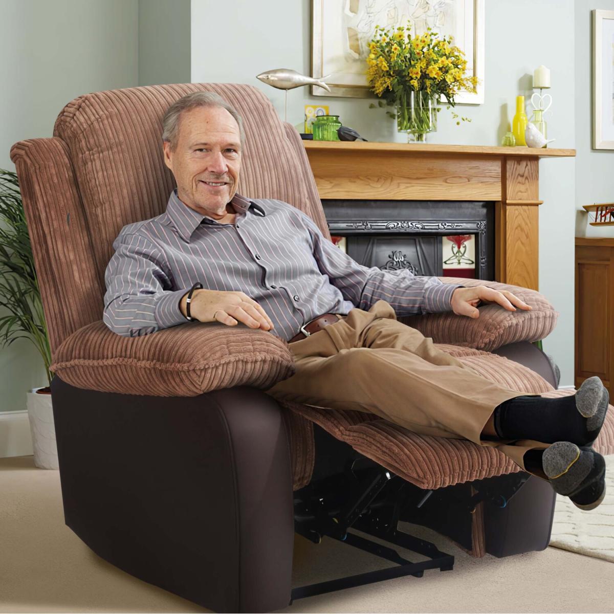 This stylish 1 seater chair is upholstered in a jumbo cord fabric and is available in either Grey or Brown. Designed to take relaxation to the next level, the chair can easily transition into a reclined position. And there's contrasting faux leather to make this recliner even more easy on the eye. Please be advised that all dimensions are approximate, please allow room for slight variations.