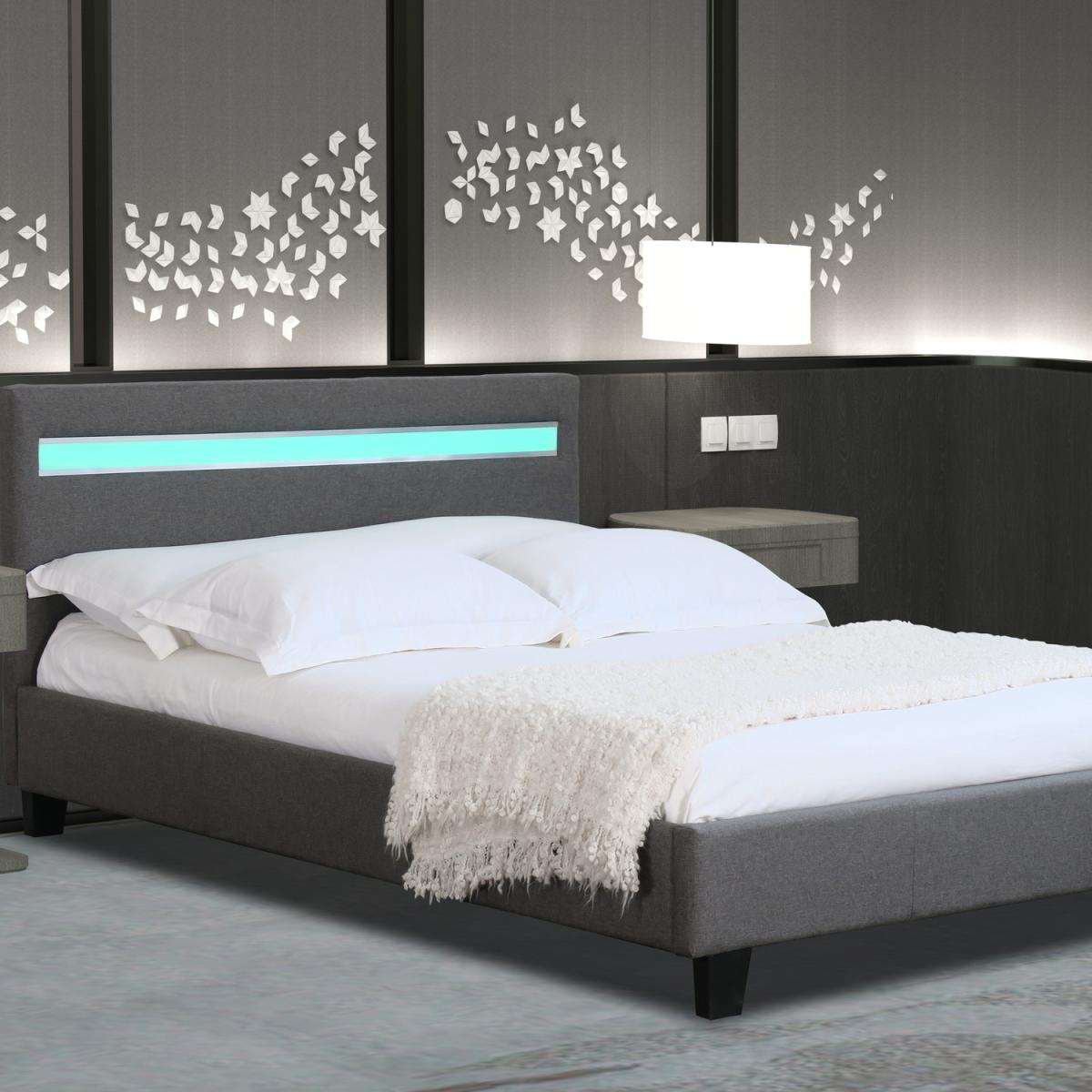 This modern bed frame is upholstered in a soft hopsack fabric and makes an elegant bedroom centrepiece with this stylish, minimalist design. The frame features a large panelled headboard with stitching detail and a low footboard with understated tapered peg feet to add a contemporary touch to any bedroom. Towards the top of the headboard is an LED colour changing display that illuminates and flashes a variety of colours, or can be made static on one colour of your choosing to add atmosphere. LED Lights are built into the headboard & simply need plugging into a standard 230v socket. Power adaptor, cable & plug & Remote controller all come with the bed. The remote is wireless and can be used to select the various light features. This simply stunning bed creates the ultimate contemporary statement. Taking modern design to the next level. With a sturdy metal frame and posture sprung slatted base, this bed offers both comfort and sturdy support for a good night's rest.