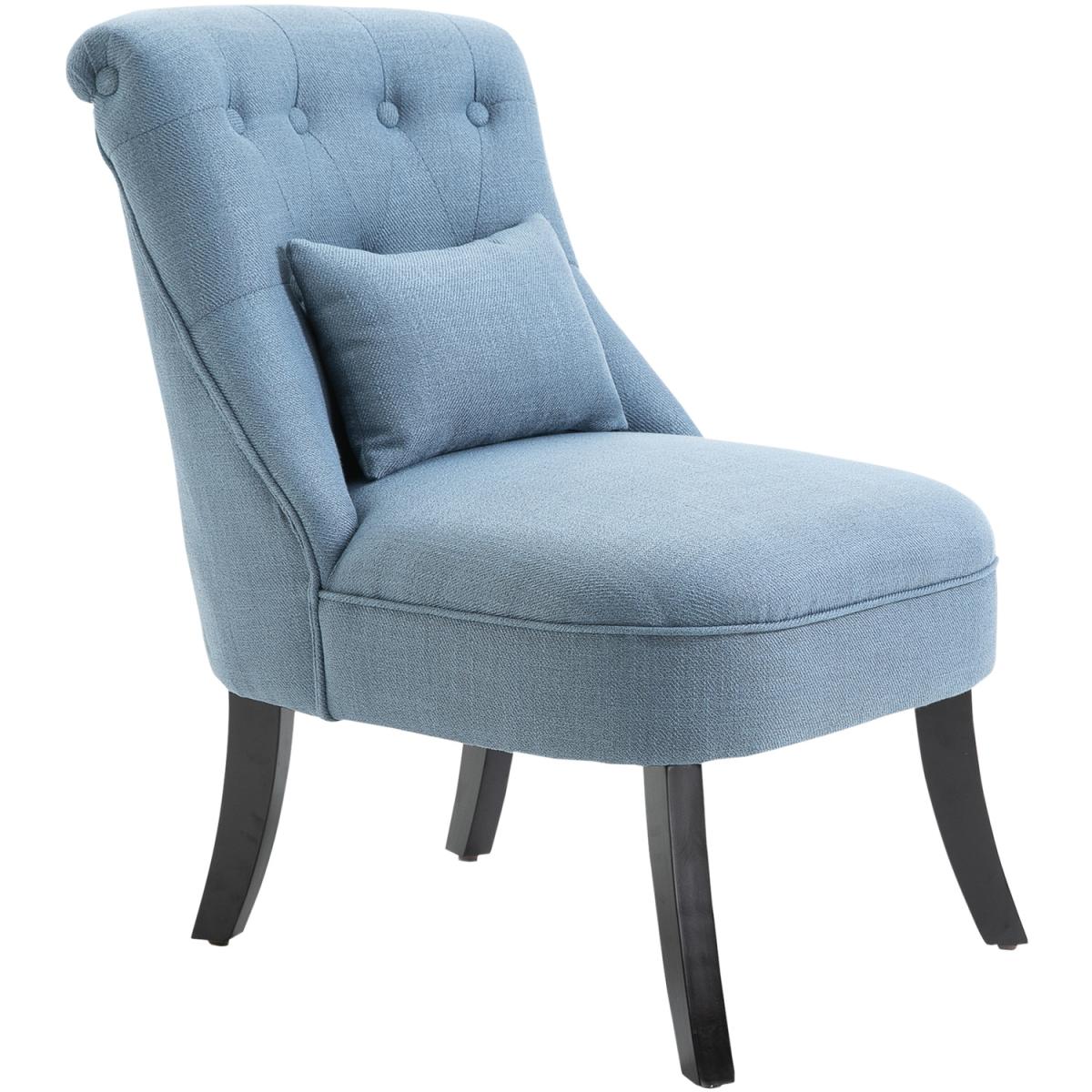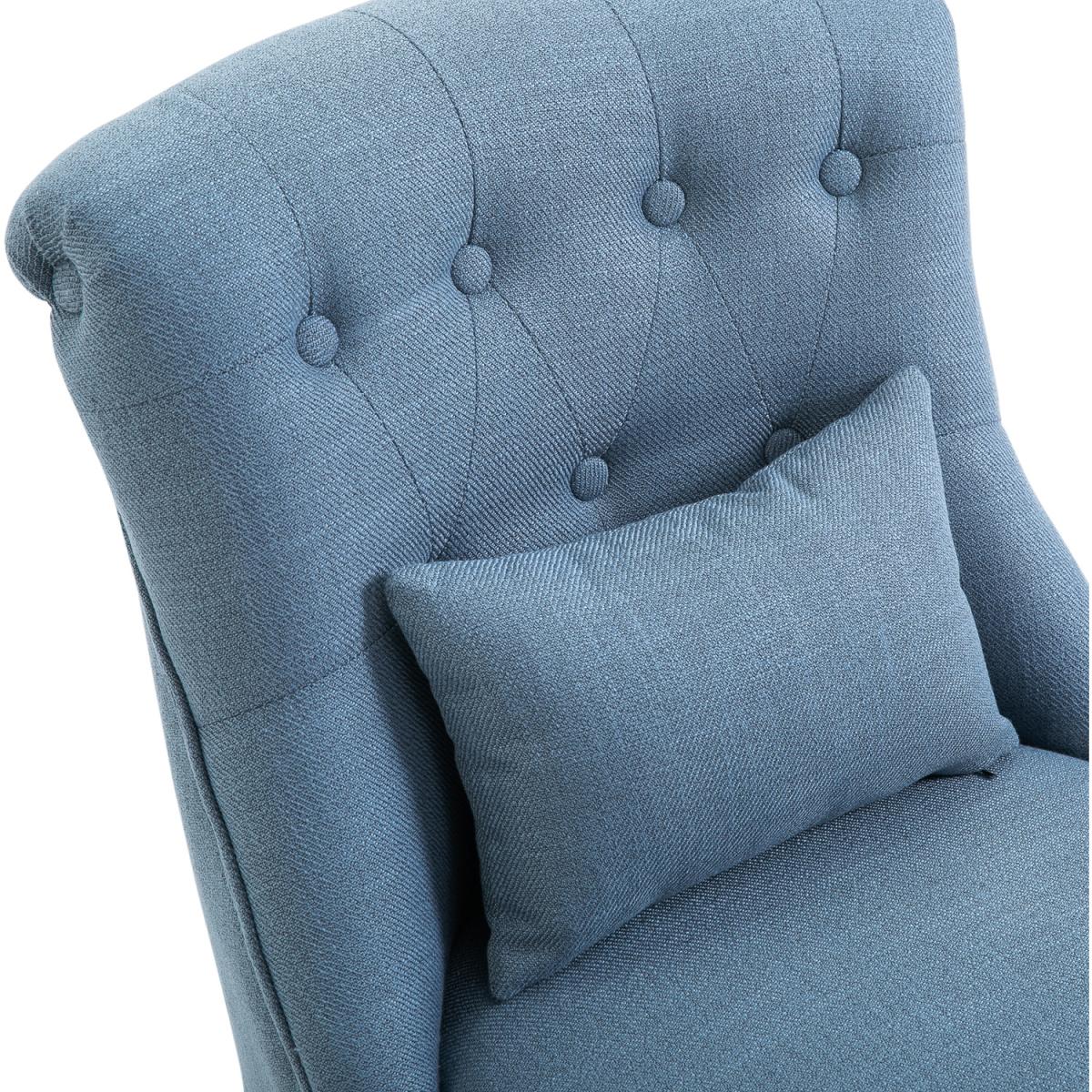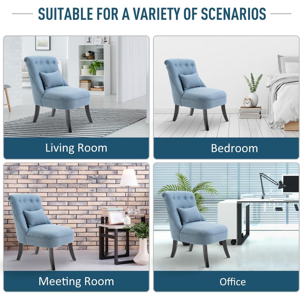 Sink into something comfortable without sacrificing on your precious home space with this accent chair, from HOMCOM. Linen-look fabric, the curved wooden legs and delicate button tufting on the back evokes a vintage style - a statement in any setting. Soft cushioned seat and curved backrest for comfort and support. Something different for this season and beyond.