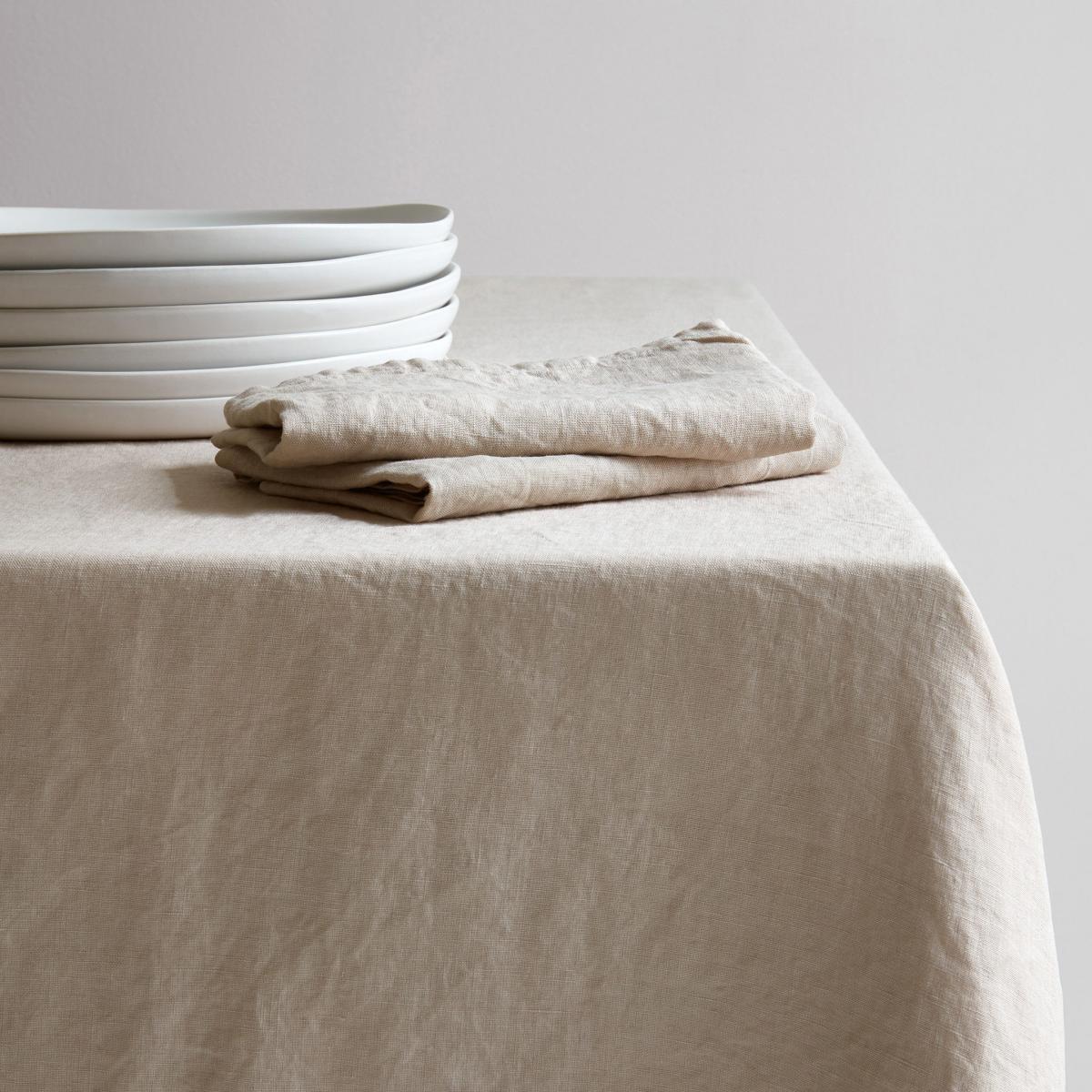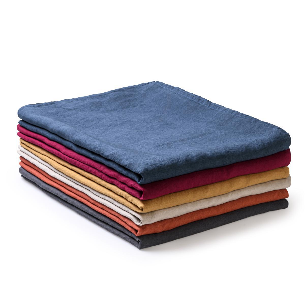 Creative and timeless, the AU PRINTEMPS PARIS household linen collection showcases noble, natural materials for diverse, inspiring interiors. Very trendy, washed linen has a natural crumpled appearance, both relaxed and elegant. The linen has undergone a TEFLON® treatment to prevent stains from entering the fabric. These tablecloths are easy to look after (washable at 60°C, no ironing). Soft, natural colours are joined by ochre or copper tones.