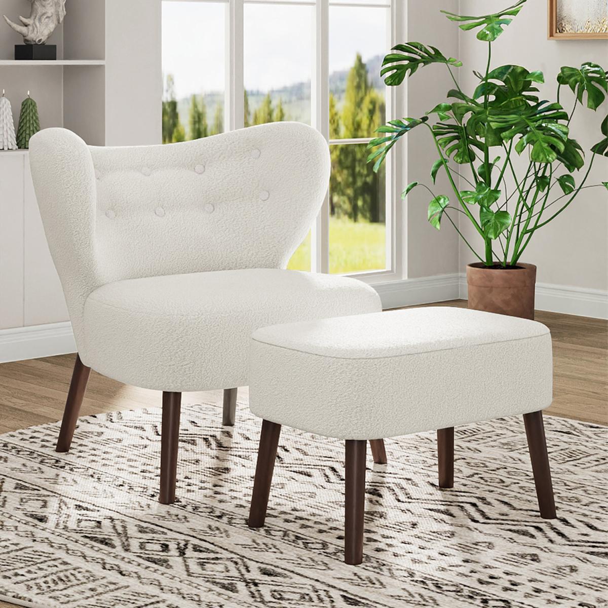 This accent chair and footstool set is your perfect companion for ultimate at-home relaxation. The armless chair features a gently curved backrest to support your back and lumbar area, ensuring all-day comfort. Wrapped in plush fur and filled with thick foam, it offers a cosy, snug seating experience. Paired with a matching footstool, this stylish duo invites you to unwind in pure comfort.