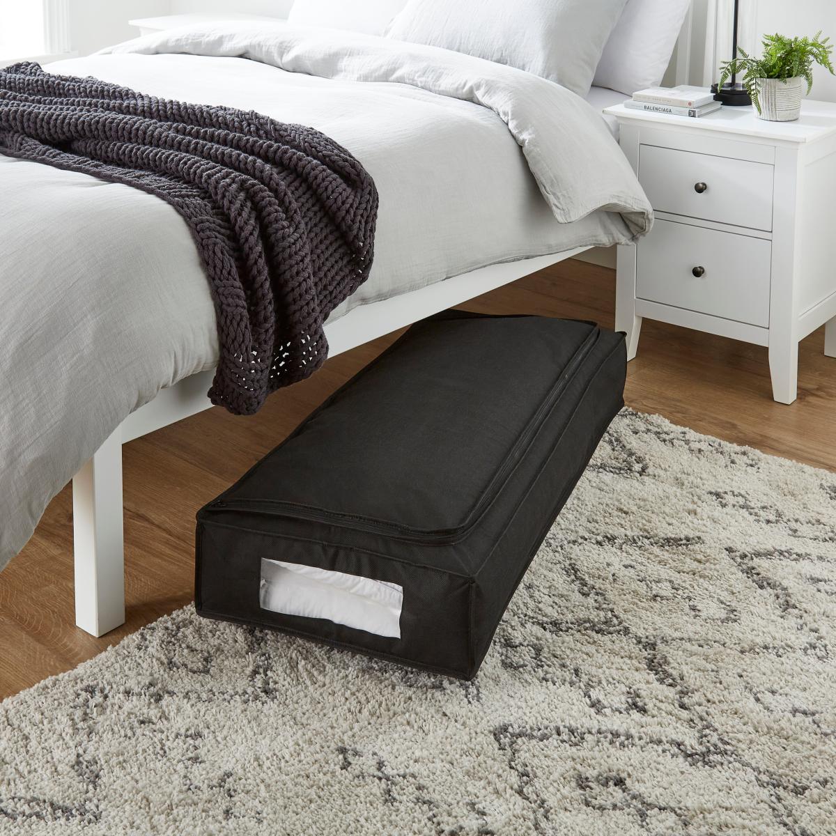 I love this black underbed storage bag for its practicality and sleek, understated look. It’s perfect for minimising clutter while keeping items easily accessible. Its neutral colour makes it versatile for various interiors, from monochrome and modern to more traditional settings. Practical styling tips include using it in neutral-toned or monochrome bedrooms for a streamlined visual effect, or pairing it with other black or dark accessories for a unified look. It works well in spaces where you want to maximise storage without sacrificing style, especially in smaller rooms where clever organisation is key. Just ensure it remains look tidy by filling it with seasonal clothing, bedding, or other seldom-used items to keep things organised and out of sight.