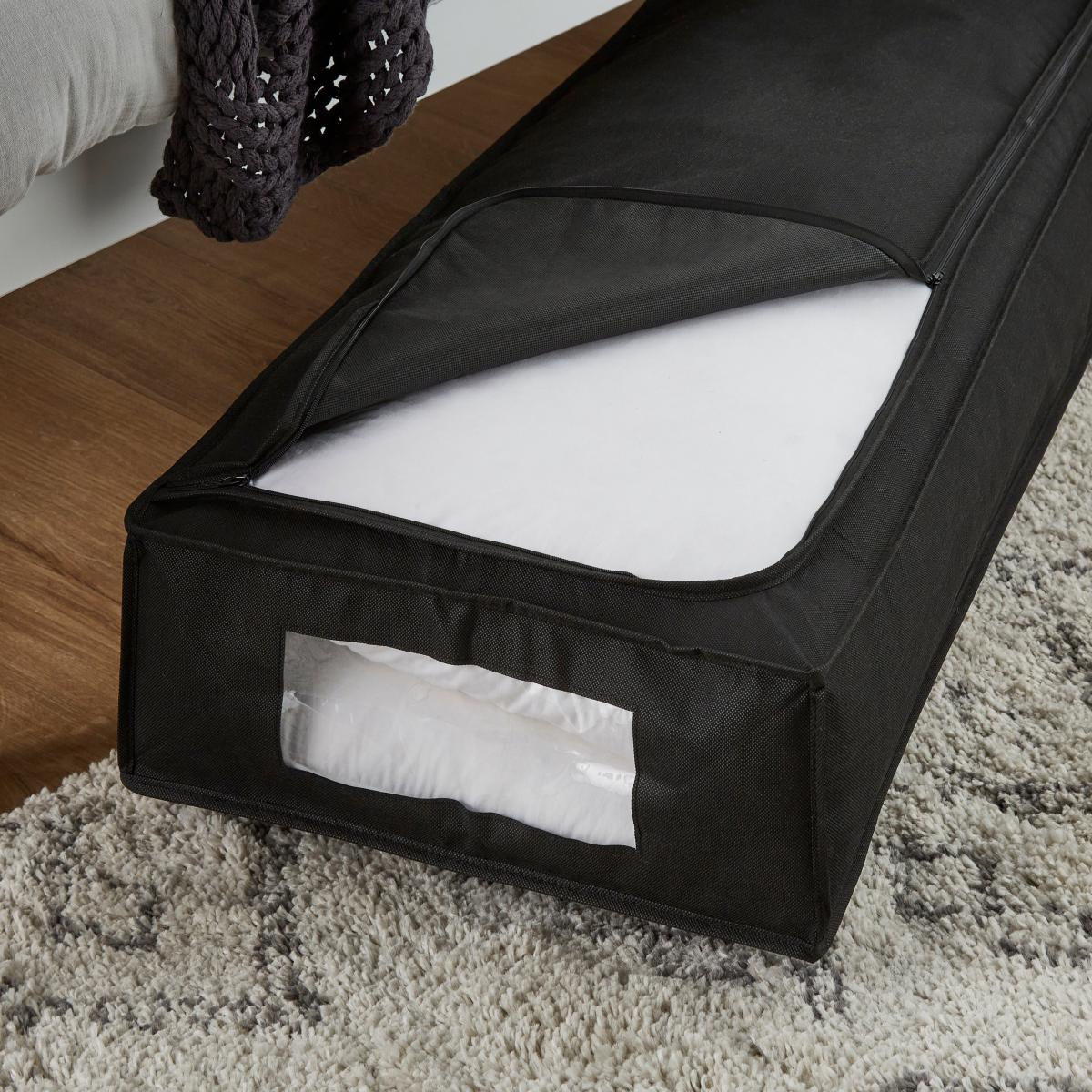 * Plain, Simple Design* Underbed Storage* Ideal for Storing Bedding, Towels, Clothes* 2-Way Zip - Easy Access* Small Transparent Window Enhance your organisational game with our Fabric Underbed Storage Bag. Its simple and plain design effortlessly suits your decor, seamlessly blending into your space. With a small transparent window, you can now easily identify what you've stored, putting an end to the guessing game. Designed to maximise space-saving efficiency, this bag is perfect for neatly tucking away your clothes, bed linens, and towels. The two-way zip ensures quick and fluid access, making your daily routines smoother.