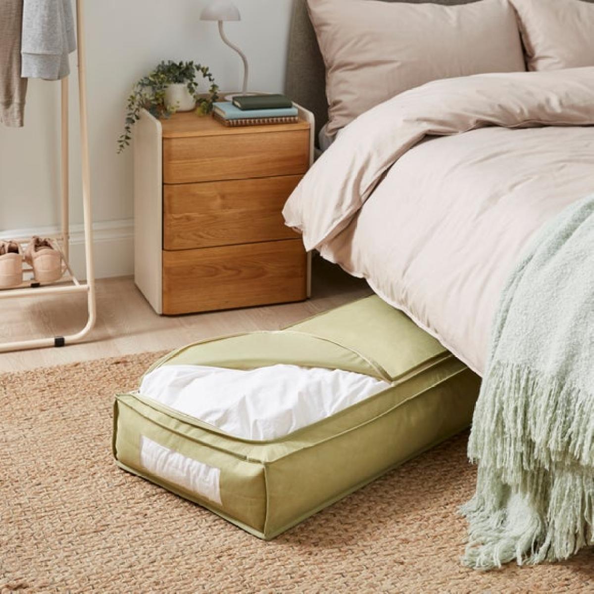 I really like this fabric underbed storage bag for its practicality and versatility. It’s ideal for keeping seasonal clothes, extra bedding or even lightweight duvets out of sight, helping to keep the room tidy without sacrificing style. Its neutral fabric makes it adaptable for various interior styles, from minimalist to cosy, and it works well in contemporary or traditional spaces. For a polished look, I recommend pairing it with matching textiles or placing it discreetly under the bed to maintain a clutter-free aesthetic. It can be particularly useful in smaller bedrooms where maximising space is essential, offering a practical storage solution that integrates seamlessly into the overall look.