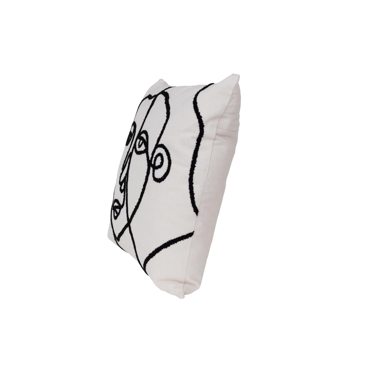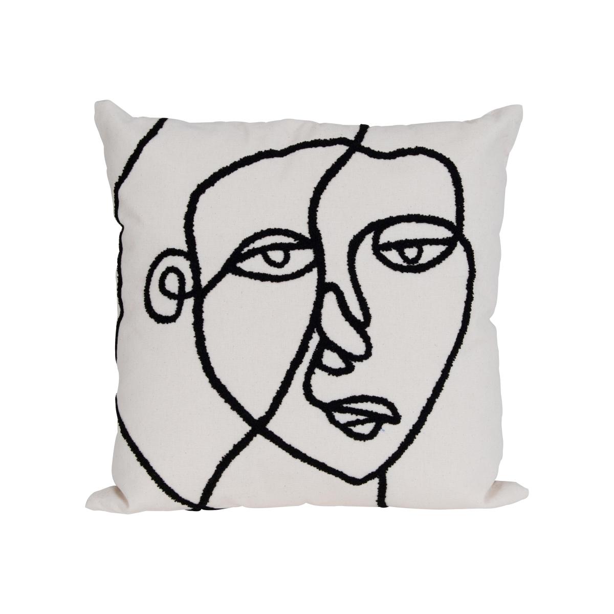 Elevate neutral interiors with this face-embroidered cushion. Its monochrome design will add an artistic touch wherever you place it. Why you'll love it. Not just a pretty face. Modern design. Durable yet soft to the touch. Exclusive geometric line drawing. Brings additional texture to your sofa, chair or bed. Made with care for Furniture Village. What you need to know. 100% cotton. Removable cover for easy maintenance. For indoor use only. Dimensions. Height: 4 cm (2 in). Width: 45 cm (18 in). Depth: 45 cm (18 in).