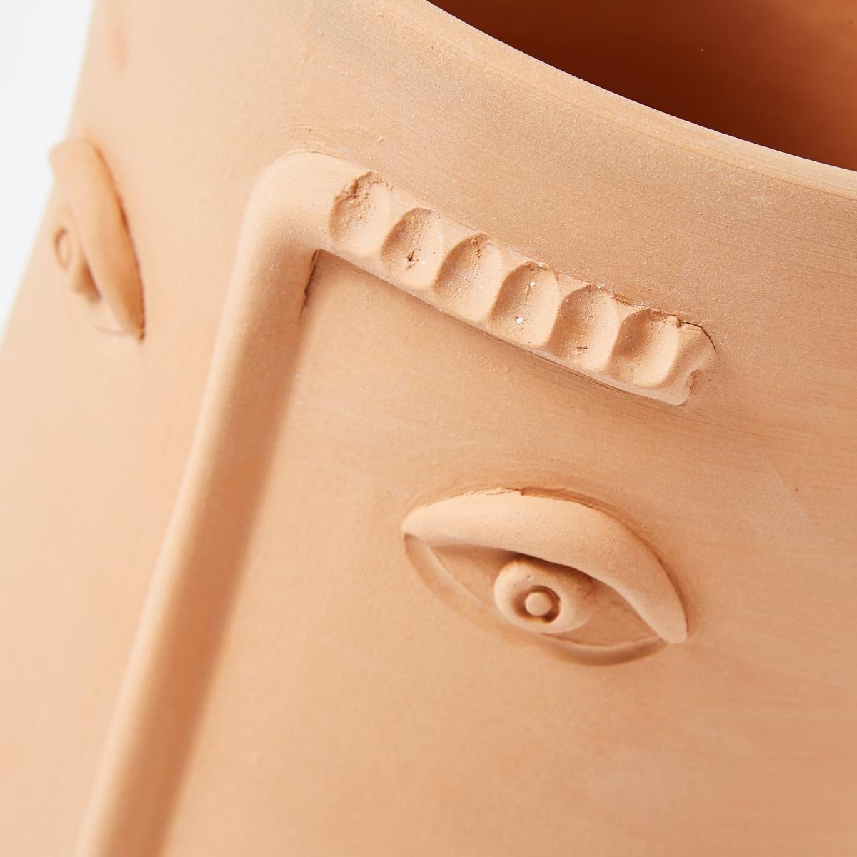 The terracotta Face Vase is created exclusively for The Conran Shop in Puglia, Italy. Forming part of the collection of hand-finished decorative plates and vases, each piece is handcrafted by artisans whose skills have been honed and passed down through generations. Available in various diameters and colours, the abstract face vases look great presented in a creative dining setting or solely displayed as an art piece. These are handmade items by generations of crafts people in Italy. Each piece is unique and will show the marks of the maker. The hand dipped glazes flow differently from piece to piece causing small variances and irregularities in the glaze.