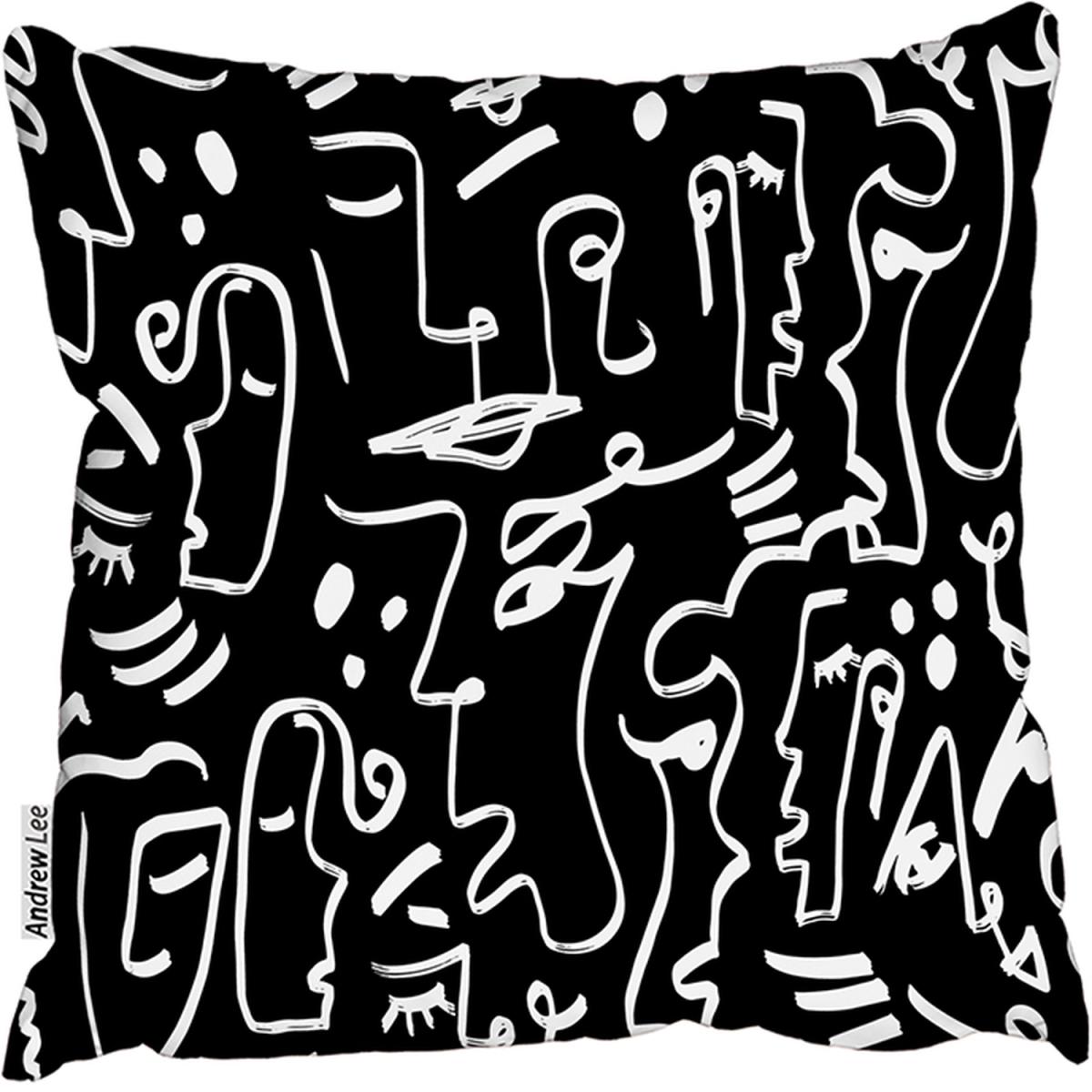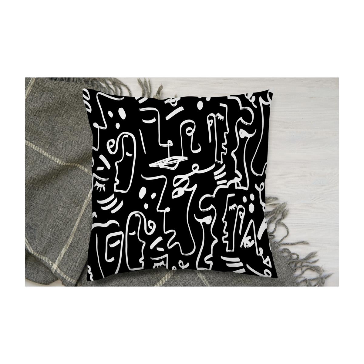 Faces, Masks And Geometric Shapes Repeating Cushion - Black / 60