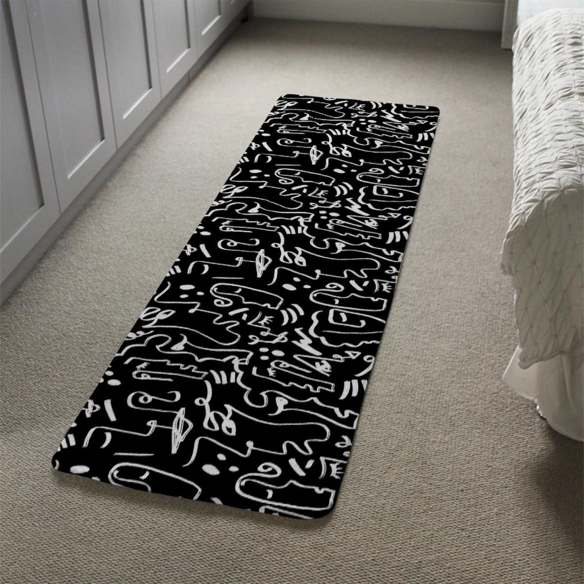 I love this runner because it adds a bold, contemporary touch to both modern and eclectic interiors. The striking black background with abstract faces, masks, and geometric shapes creates visual interest without overwhelming the space. It works particularly well in hallways, kitchens, or open-plan dining areas where you want a statement piece that anchors the room. For practical styling, consider pairing it with neutral furniture and a few monochrome accessories, allowing the design to stand out. It’s also a good option for those who like a graphic, artistic vibe but prefer low-maintenance black and white tones, making it versatile across a range of colour schemes.