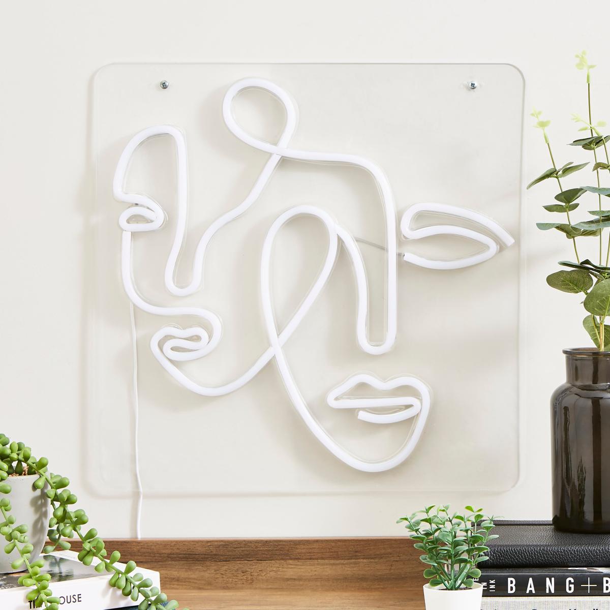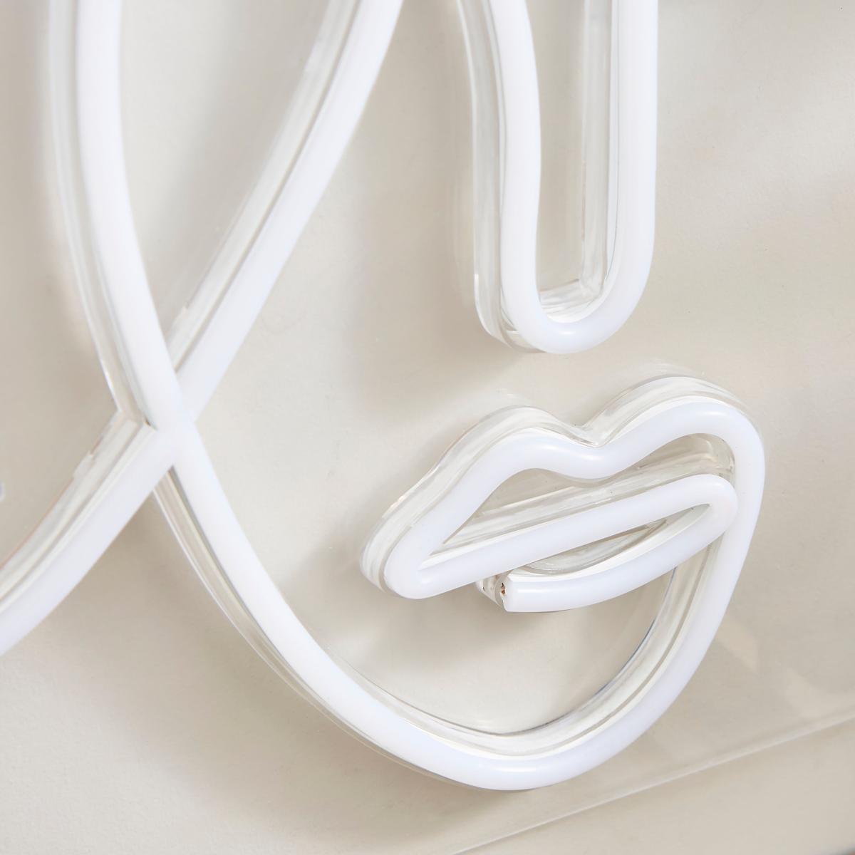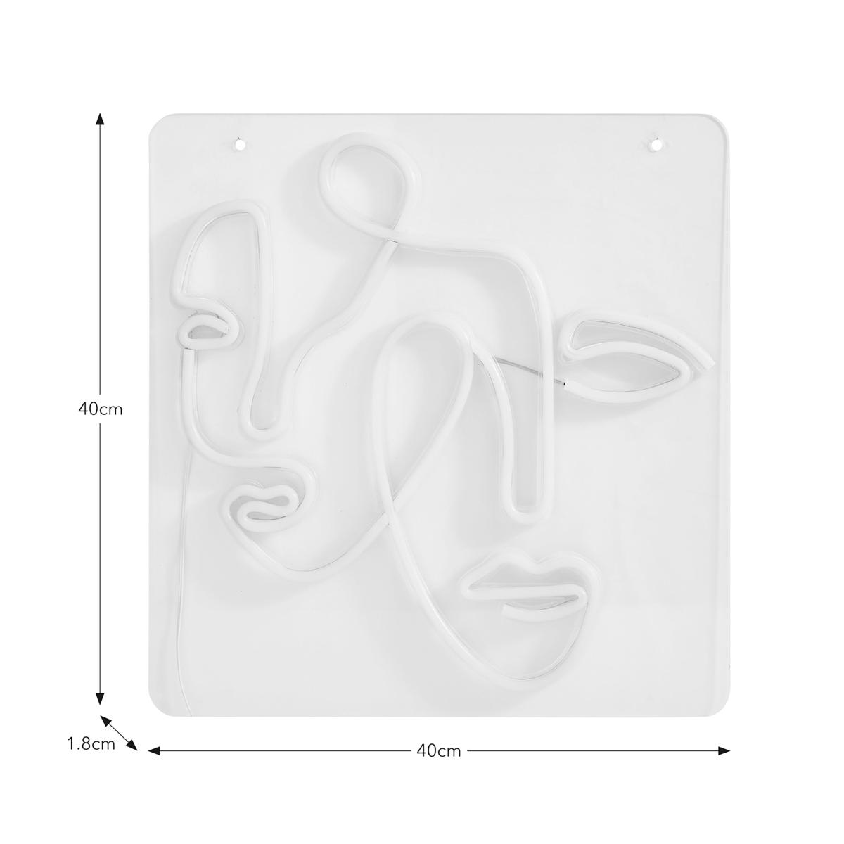 Add a modern and stylish touch to your space with our Faces Neon Wall Light. This wall light showcases a captivating silhouette design of faces, illuminated by warm white LED light. The USB cable allows for convenient installation, bringing an eye-catching focal point to your decor.