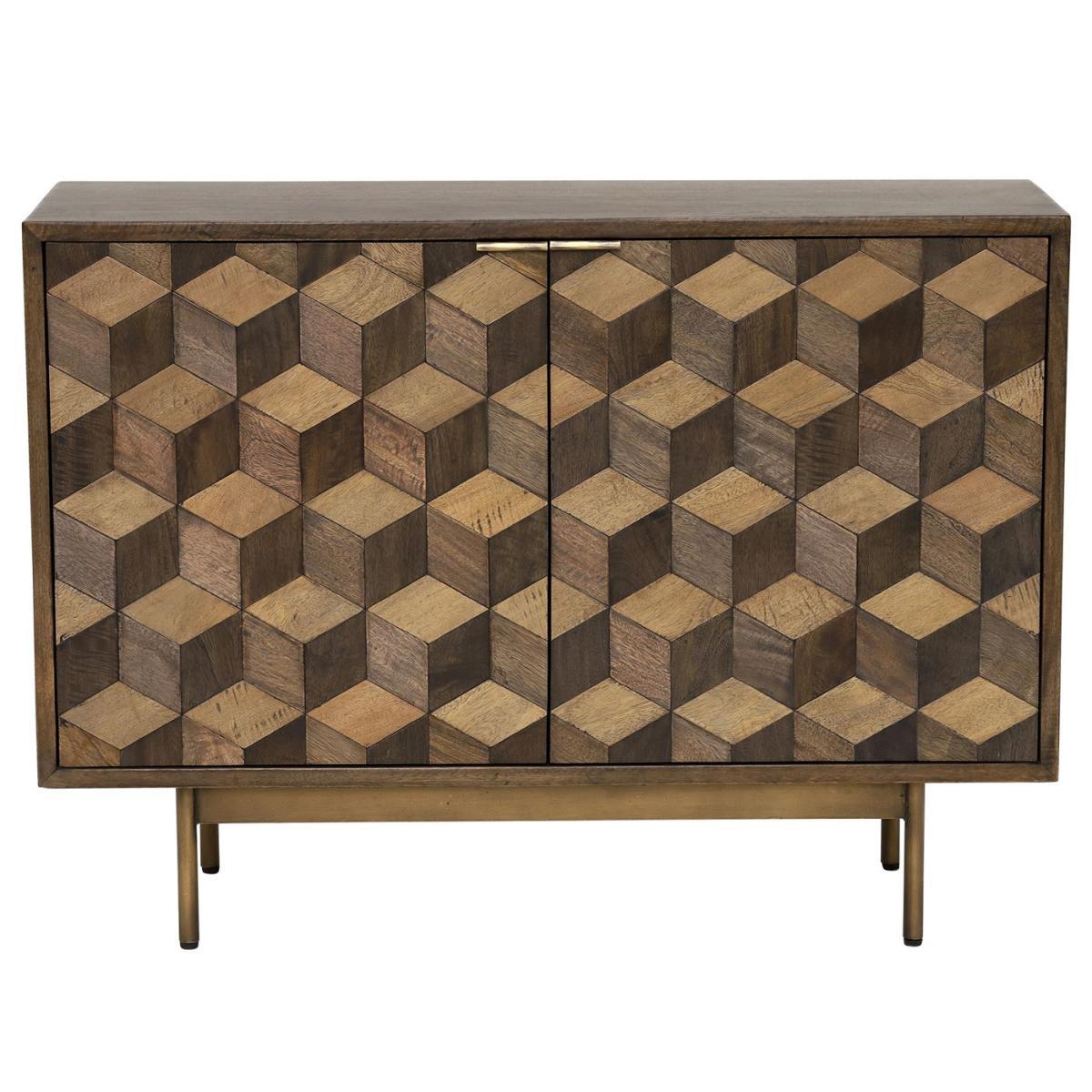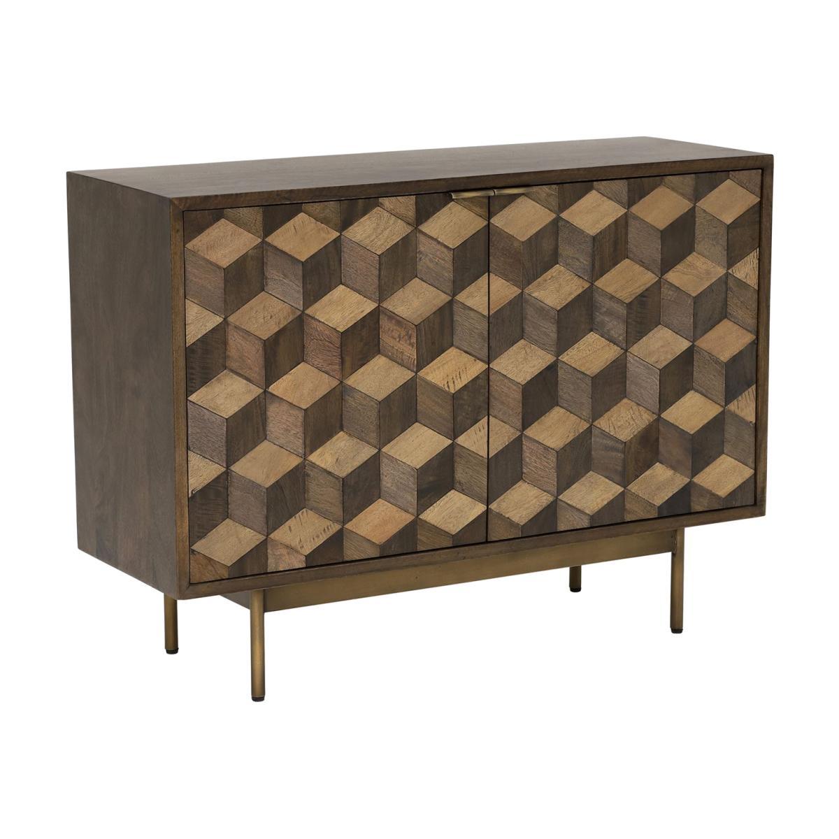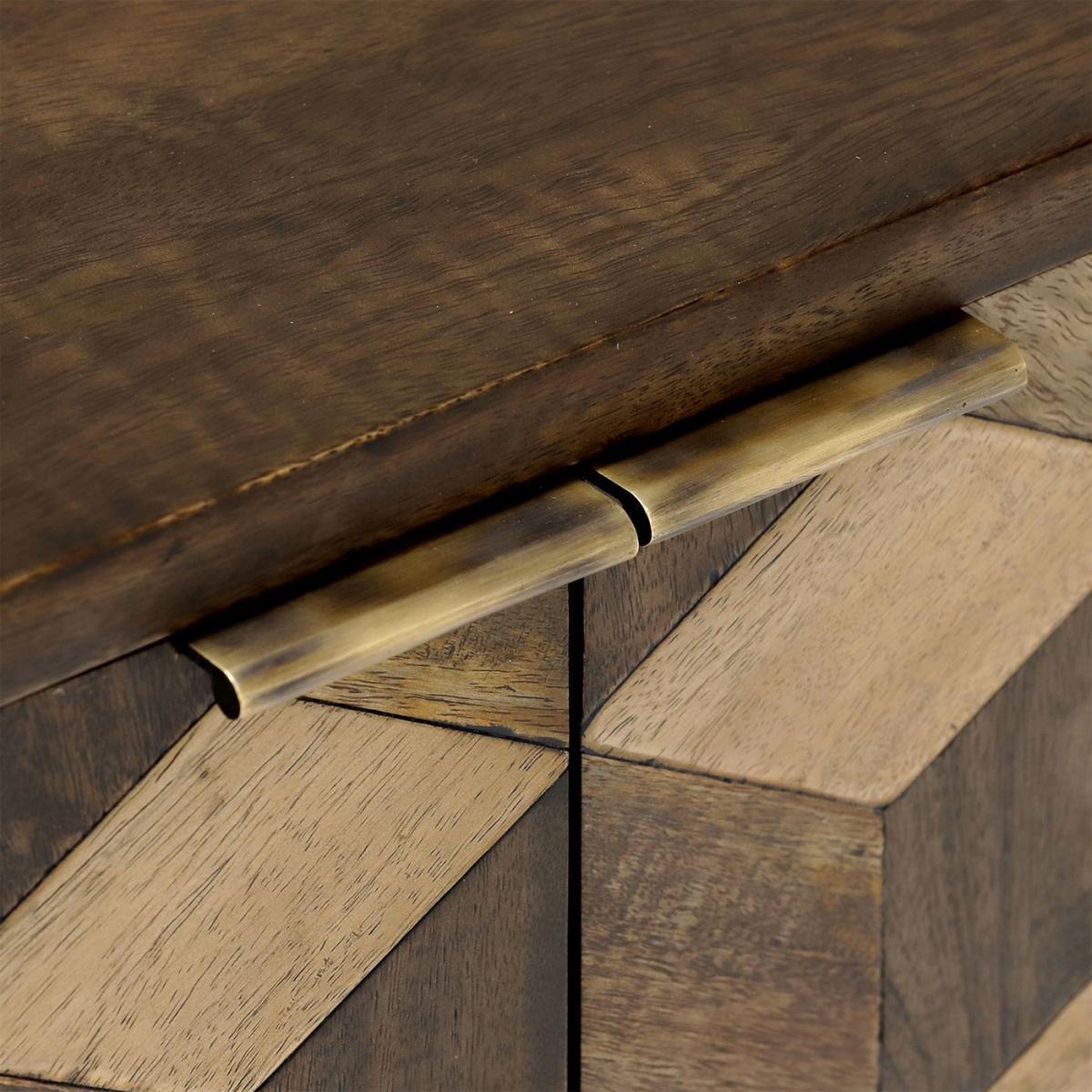Facet 2 Door Sideboard, Dark Mango Wood and Brass