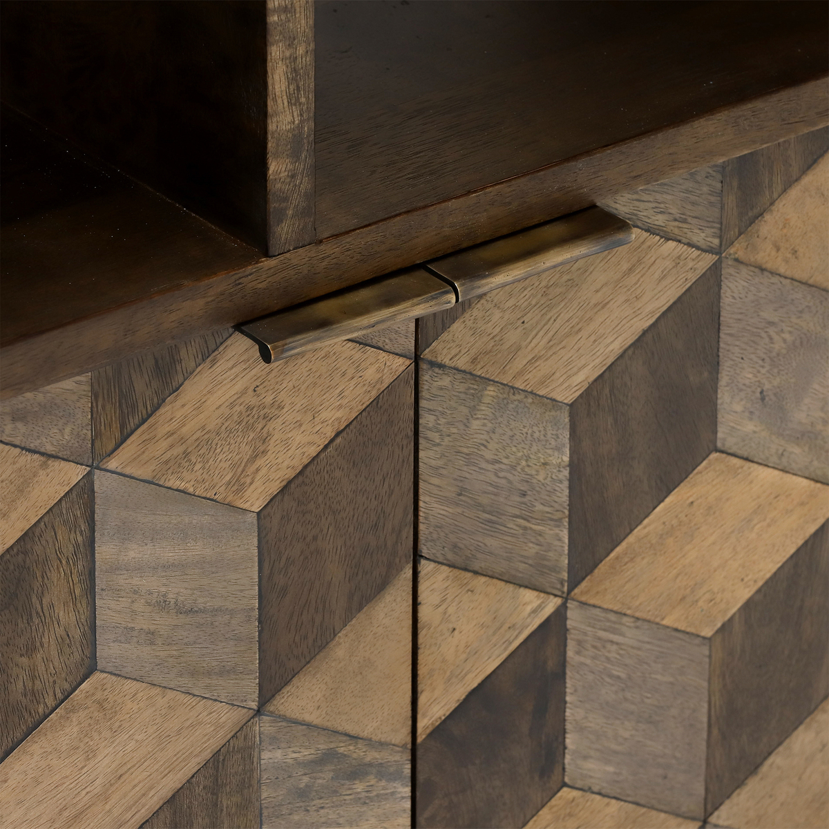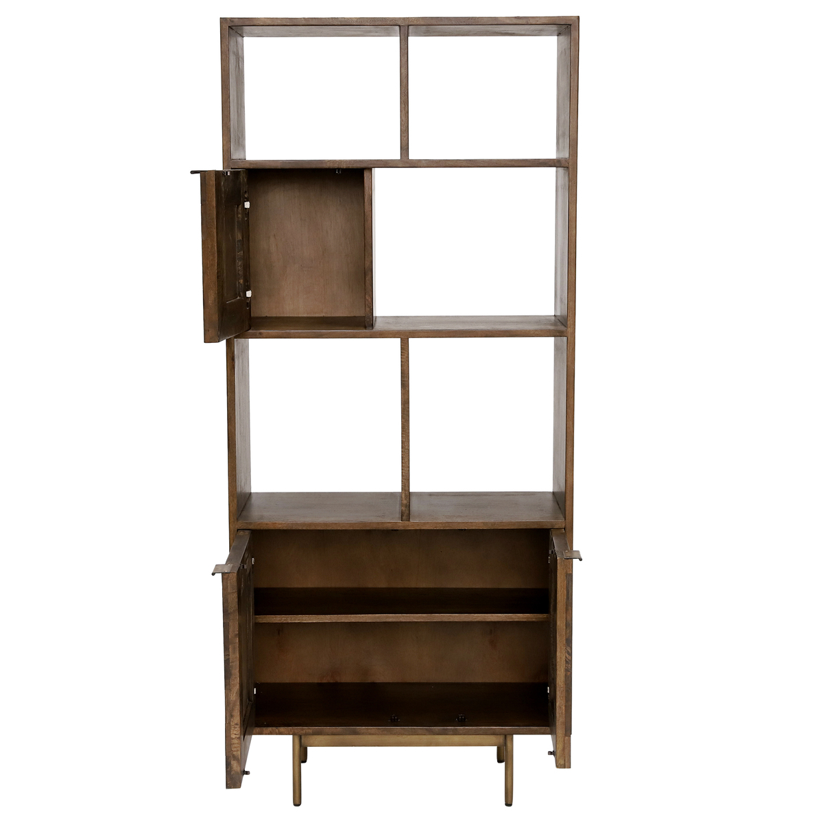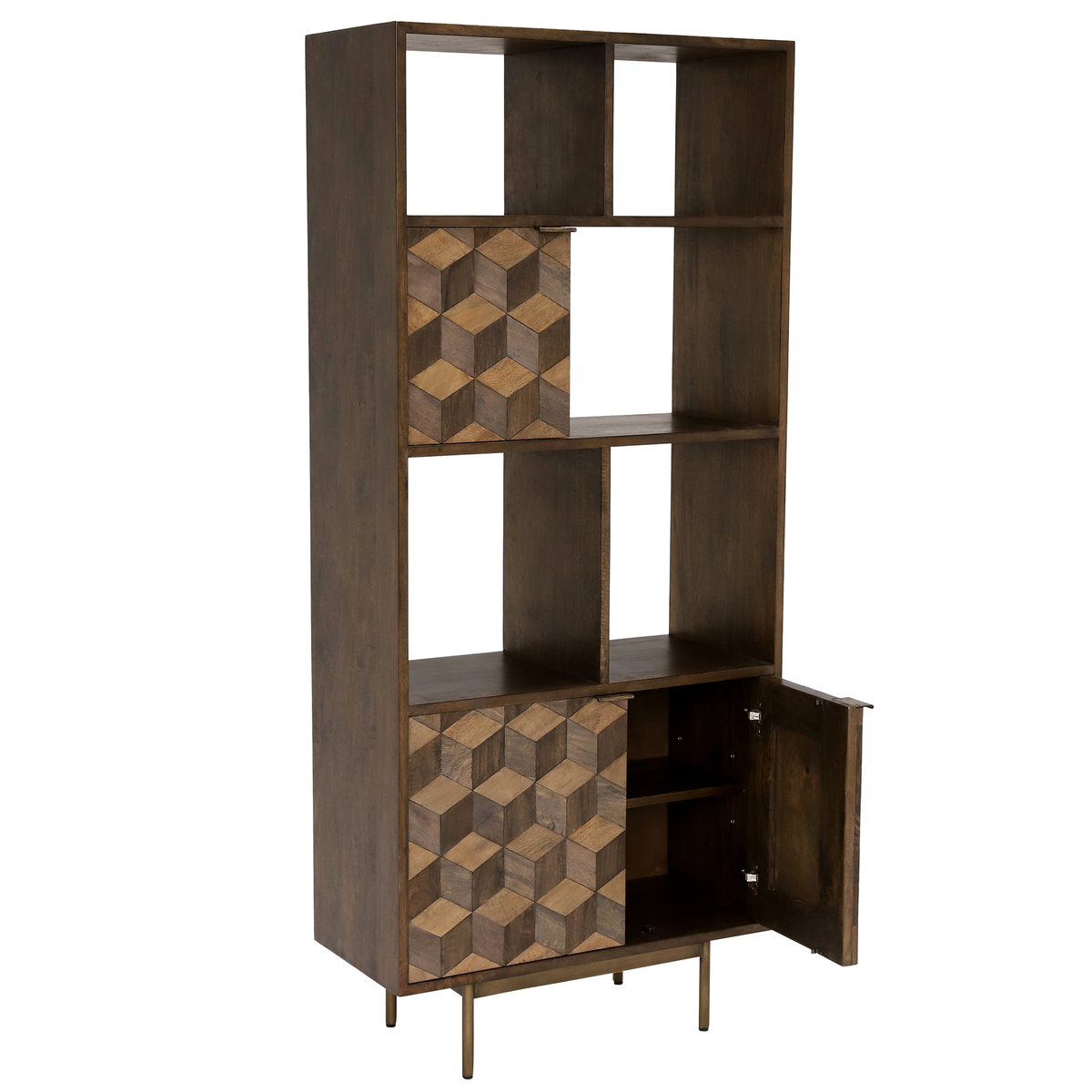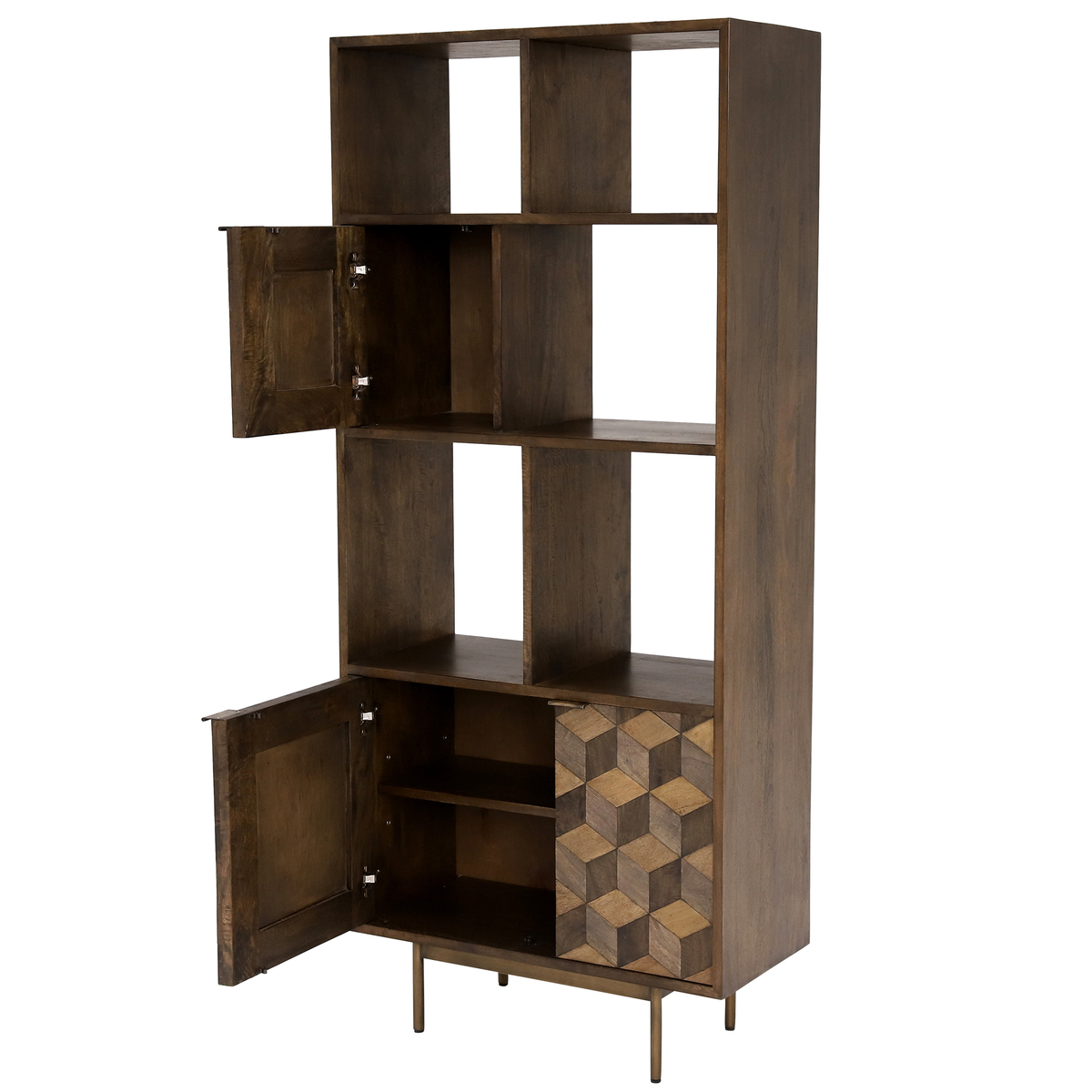 Facet 3 Door Open Bookcase, Dark Mango Wood and Brass