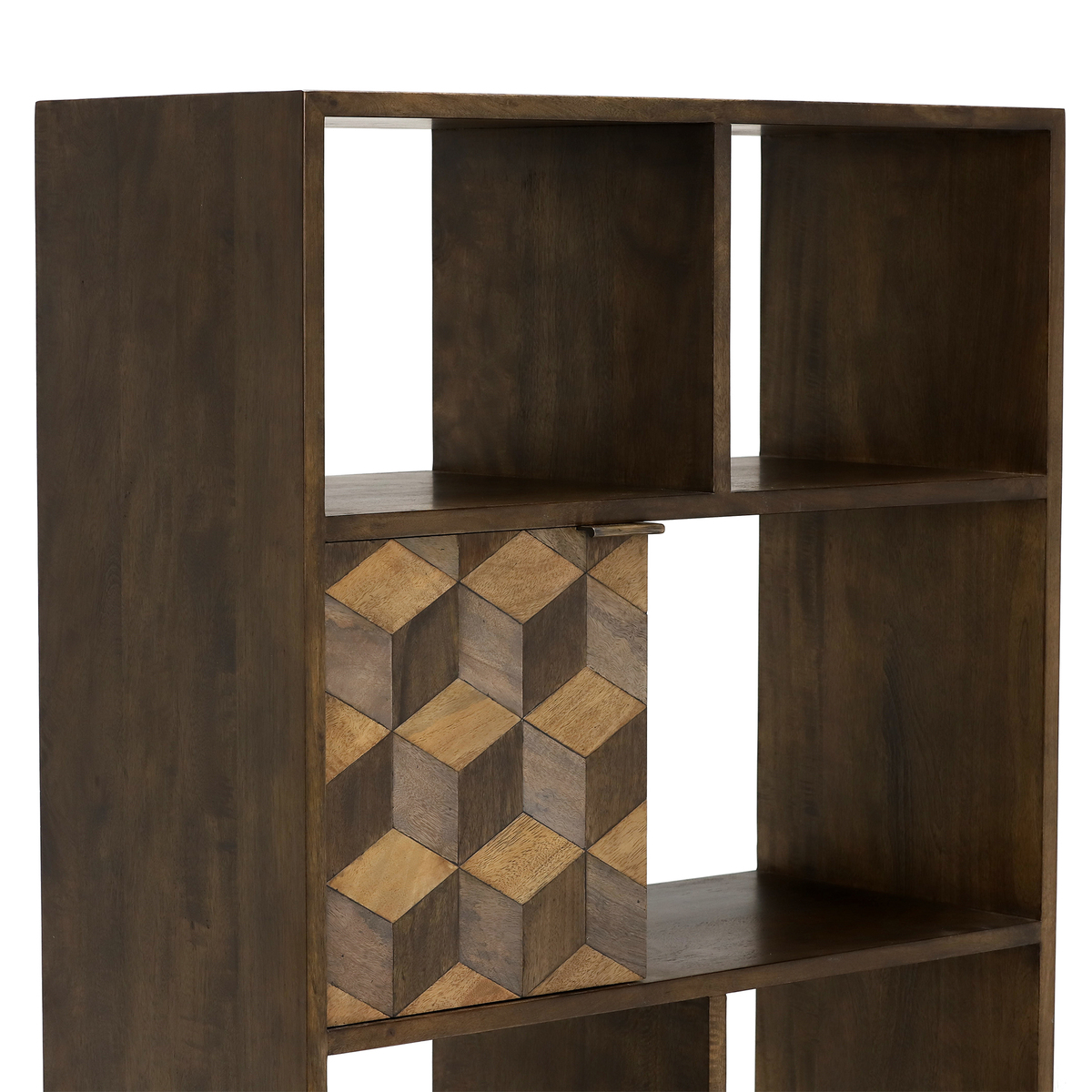 A one-way ticket to showstopping style, the Facet 3 door open bookcase has a unique and incredibly on-trend look that you’ll fall more in love with every day. Built from dark mango wood, it displays gorgeous grains and individual colourings, whilst the backless design gives a sense of space to its statuesque form.;Smartly configured, the bookcase offers five open shelves that are perfect for displaying your favourite novels and accessories, as well as two compartments hidden behind doors so you can stow away the rest. A signature feature of the Facet range, its fronts boast a stunning geometric design that plays with the eye. Modern vintage at its finest.;Combine with the coordinating tables and sideboards for even more of an impact.