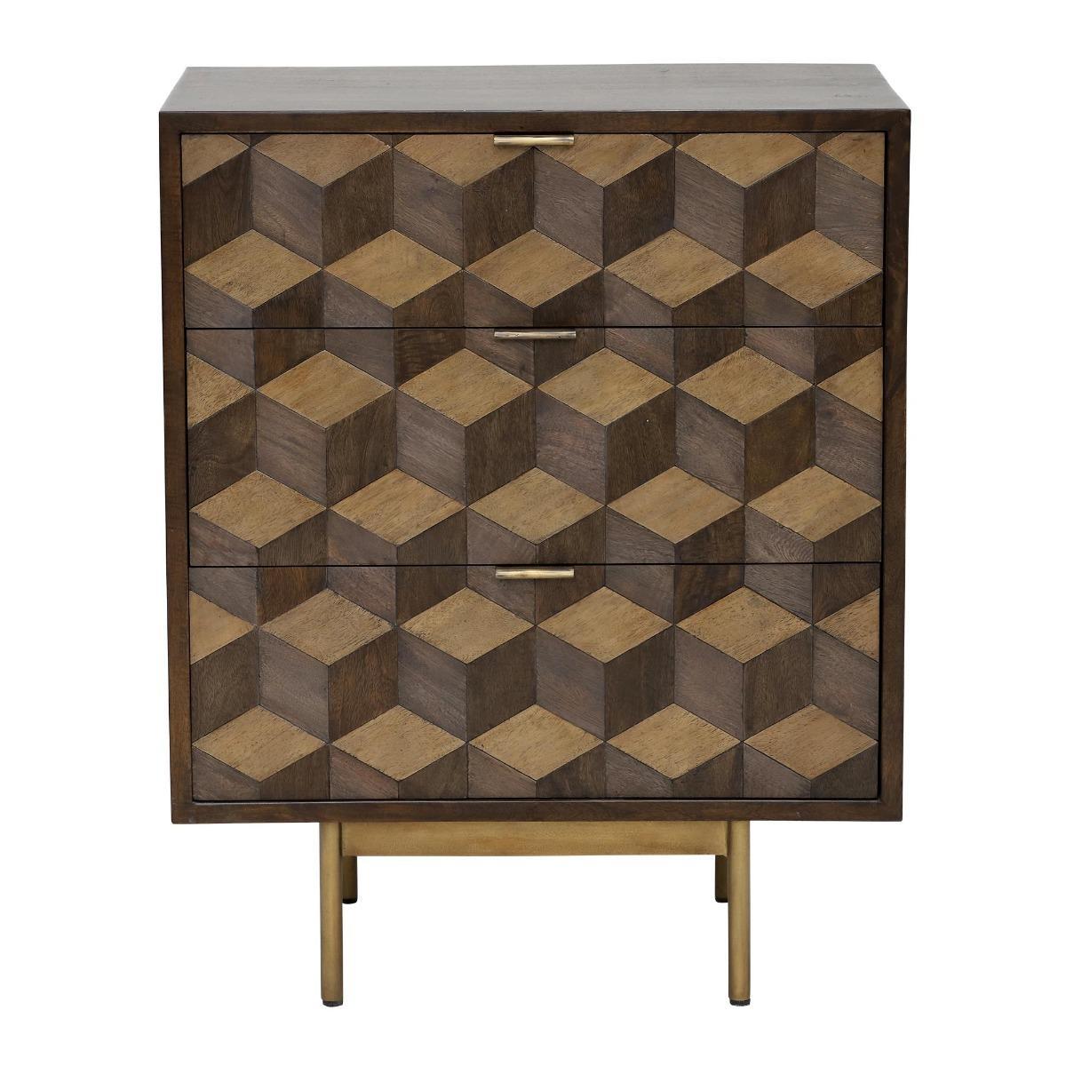 Facet 3 Drawer Chest, Dark Mango Wood and Brass