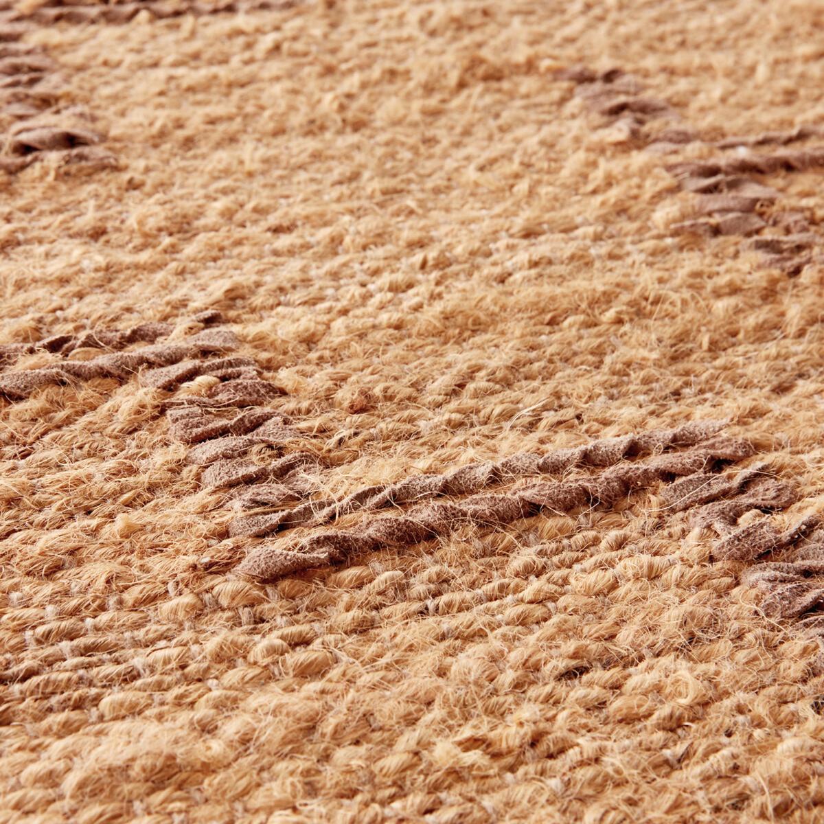 I really like this rug because it combines natural textures with a subtle geometric pattern, making it versatile for a range of interiors. It works particularly well in contemporary, boho, or Scandi-style spaces where natural materials are key. The jute adds warmth and an organic feel, while the leather detail lends a touch of luxury and durability. Practical styling tips include layering it over a neutral-toned rug for added texture or placing it under a coffee table to keep a relaxed yet polished look. Because of its sturdy materials, it’s also a great choice for high-traffic areas like hallways or living rooms, providing both style and longevity.