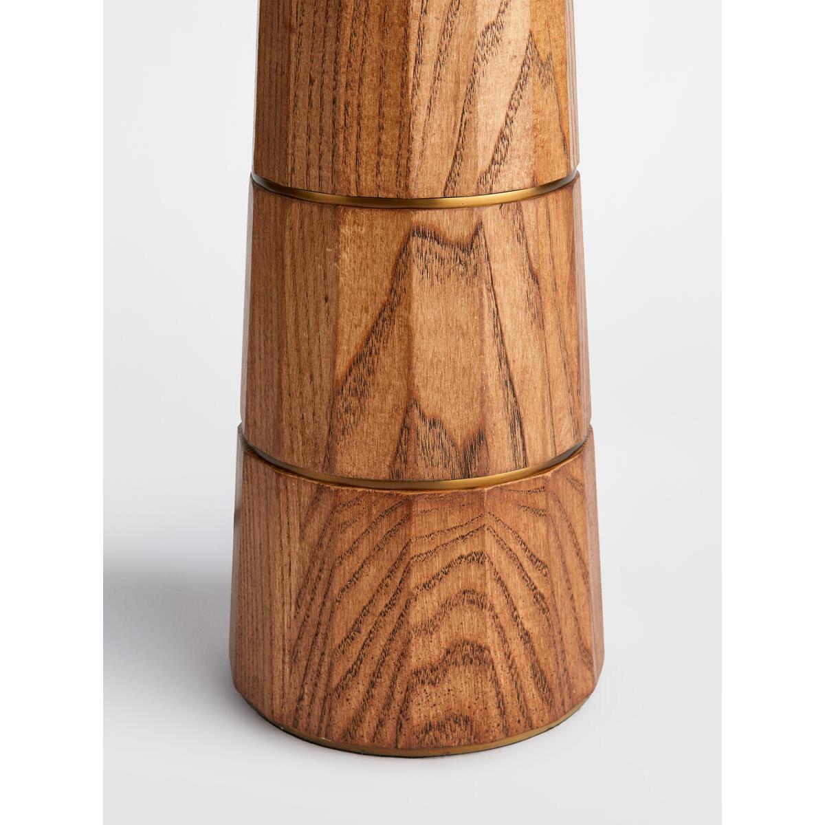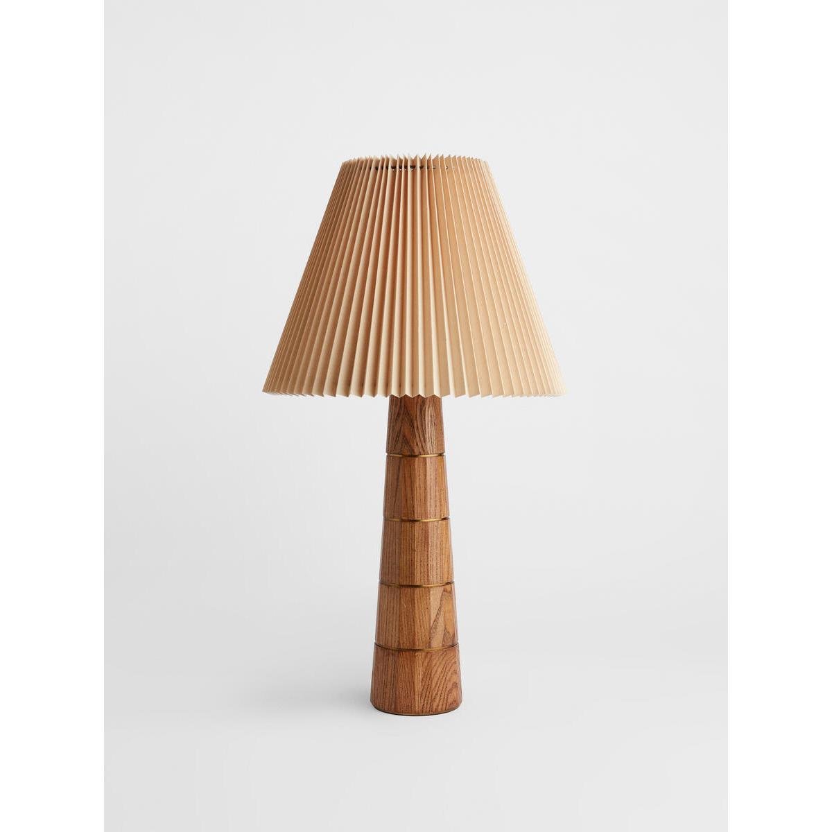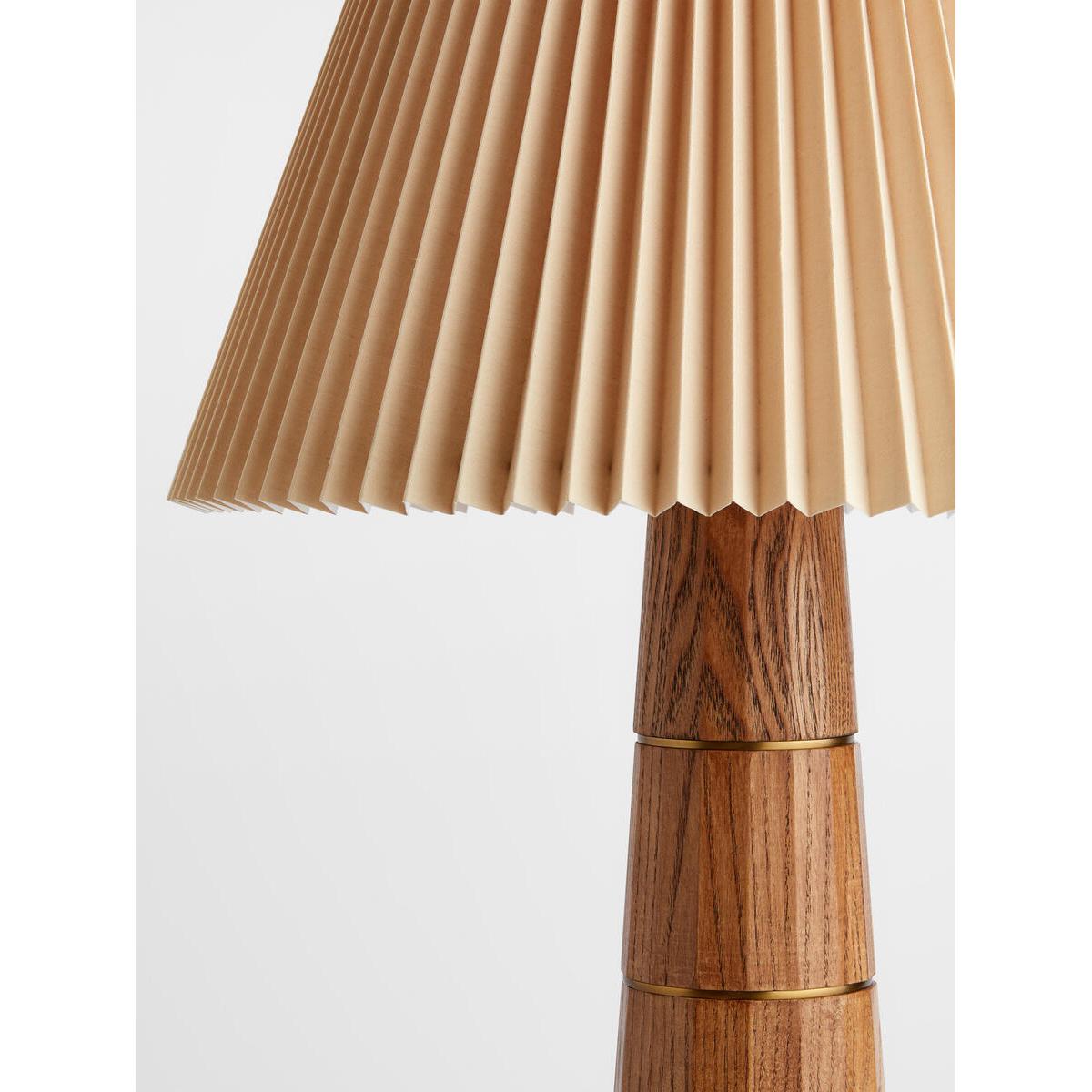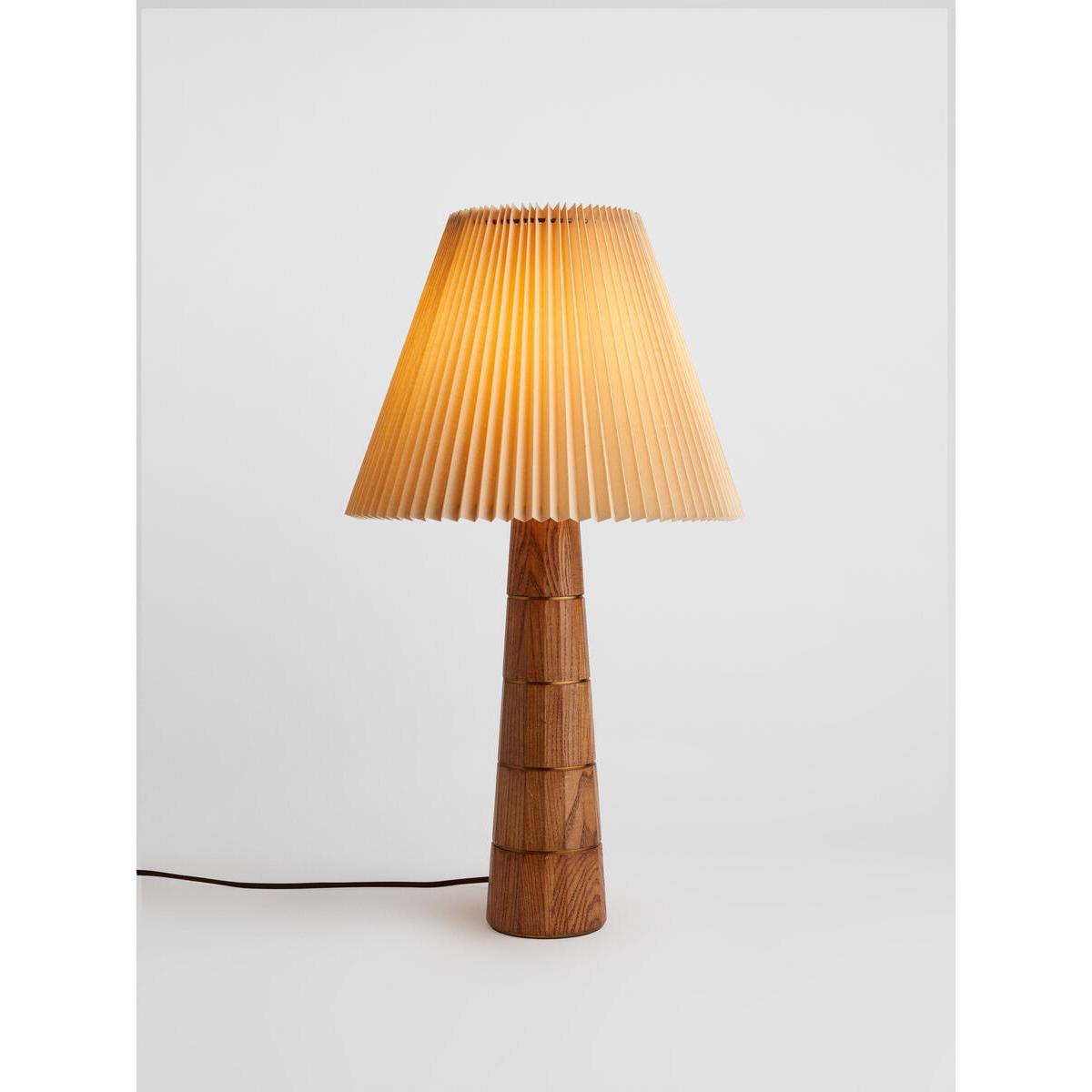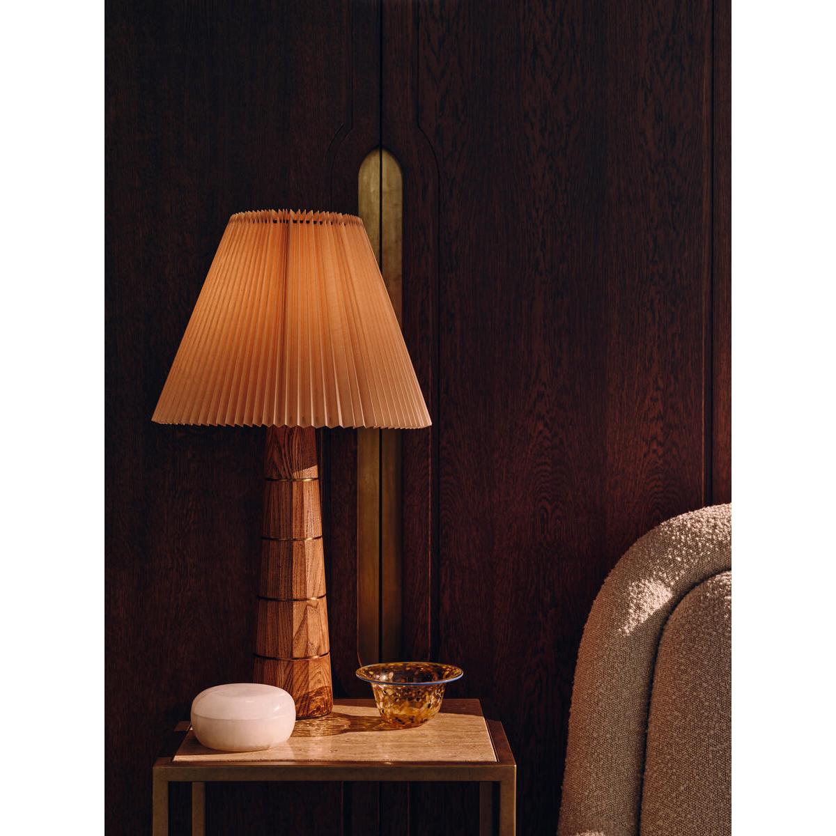 Taking its cues from Soho Roc House, the Facet table lampfeatures a mid-tone solid oak column with brass discs slottedbetween the fluted frame. A 1970s-inspired, pleated parchment shaderests on top, which softly disperses ambient light. Mid-tone solid oak column. Brass finish discs. Fluted body. Pleated parchment shade. Requires 1 x Standard E27 Globe 410 bulb/ max 40. W. Inspired by Soho Roc House.