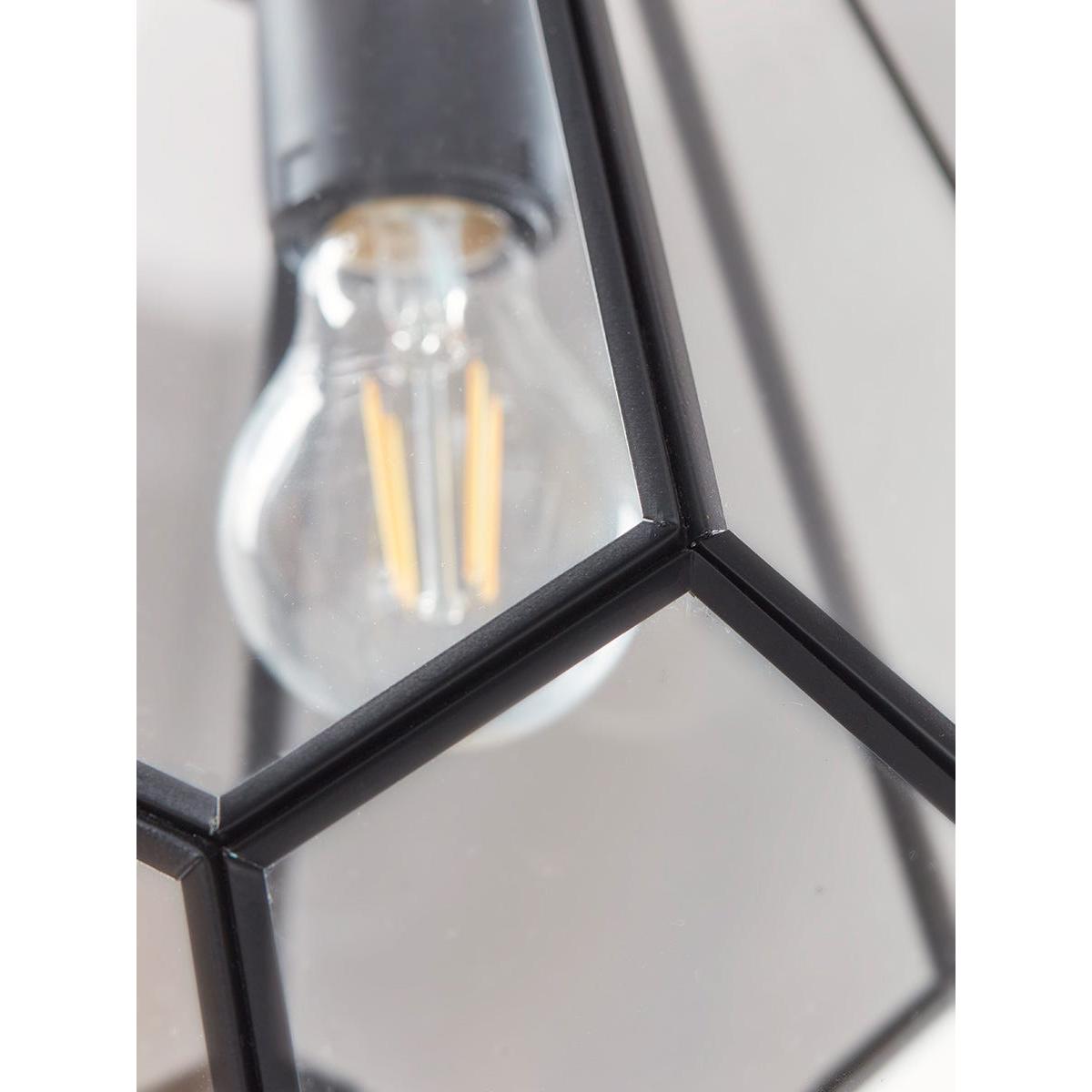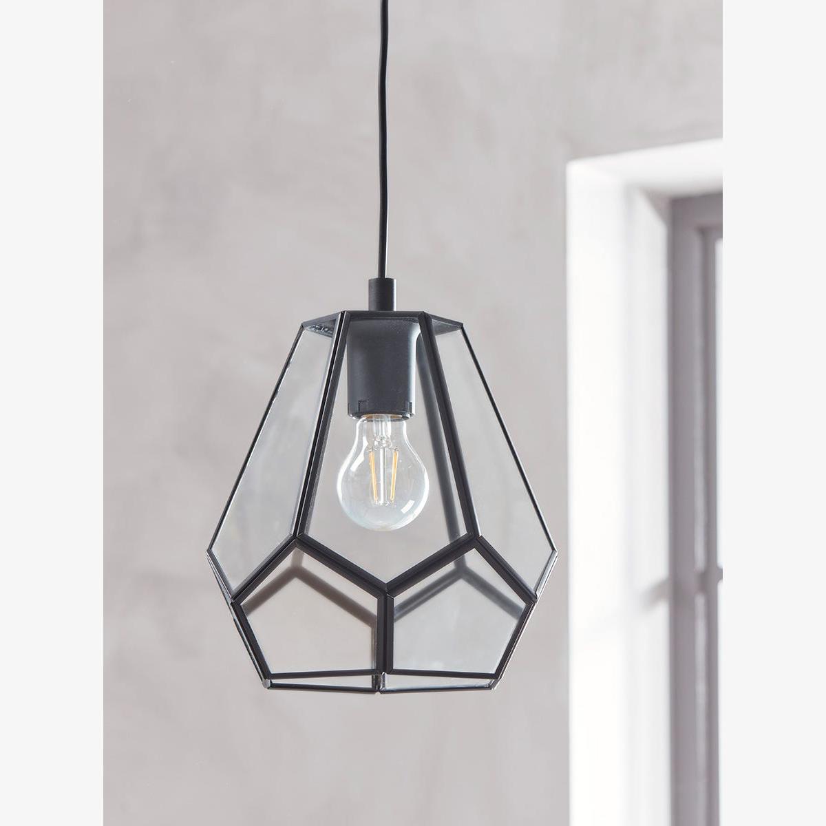 A striking pendant light featuring a matte black cage which frames a clear glass shade. With a matching square ceiling rose, this is a stylish piece that will bring a sophisticated industrial finish to your lighting scheme. Discover how to create the perfect lighting scheme for your home using our Lighting Buying Guide.