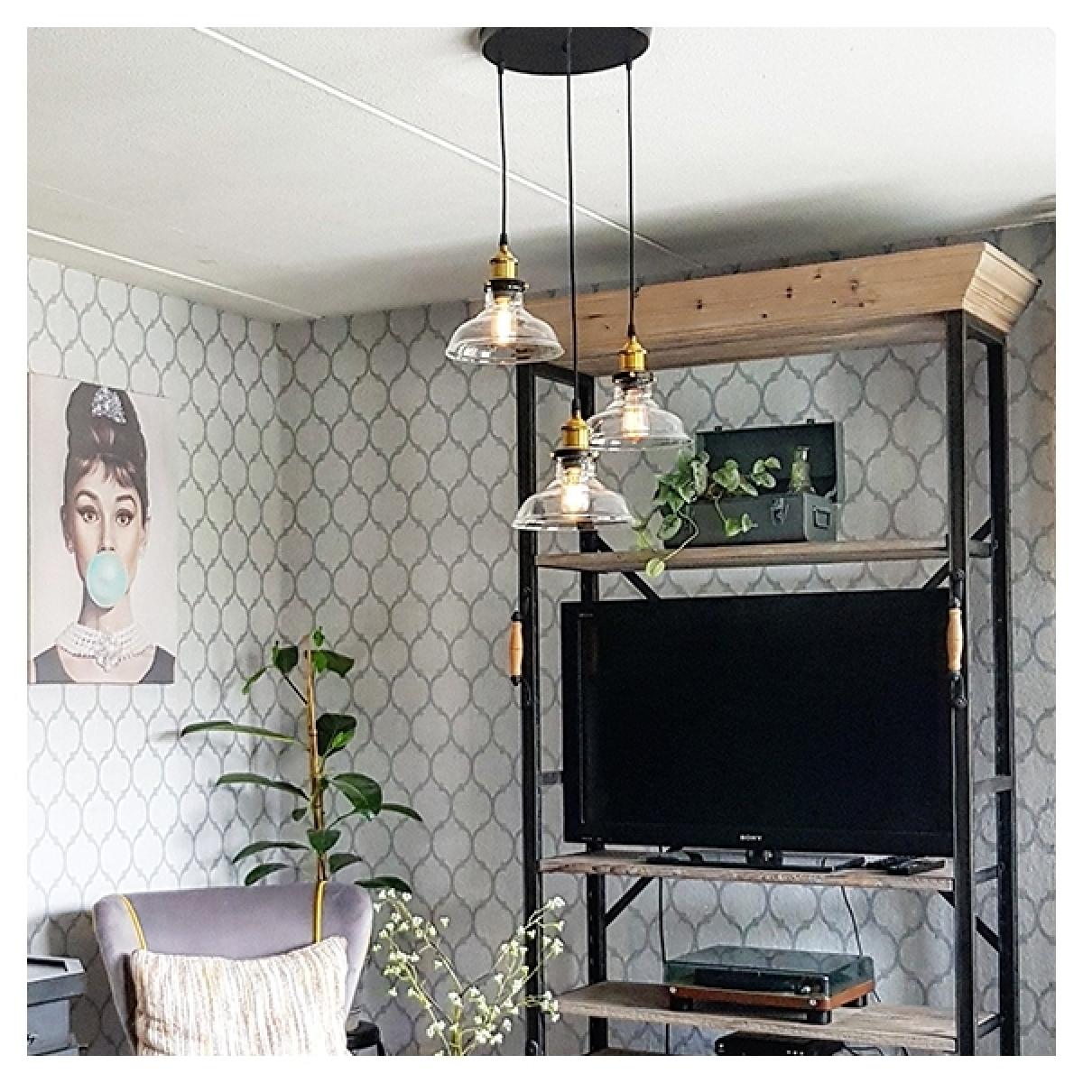I love this three-light pendant for its clean, industrial look that works well in both modern and vintage-inspired interiors. The clear glass shades and brass accents give it a versatile, timeless appeal, making it suitable for kitchens, dining areas, or even over a workspace. When styling, consider pairing it with exposed Edison bulbs for an authentic vintage vibe, or swap in LED filament bulbs for a more contemporary feel. It also pairs beautifully with minimalist or Scandinavian decor, adding a touch of warmth and character without overwhelming the space. Hanging the trio at differing heights can create a dynamic visual impact, especially over tables or islands, making this a practical yet stylish lighting choice.