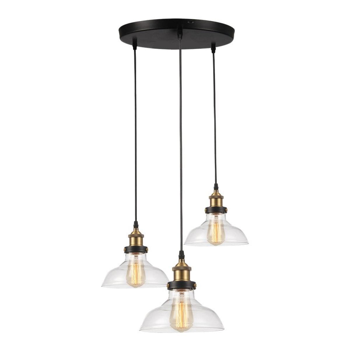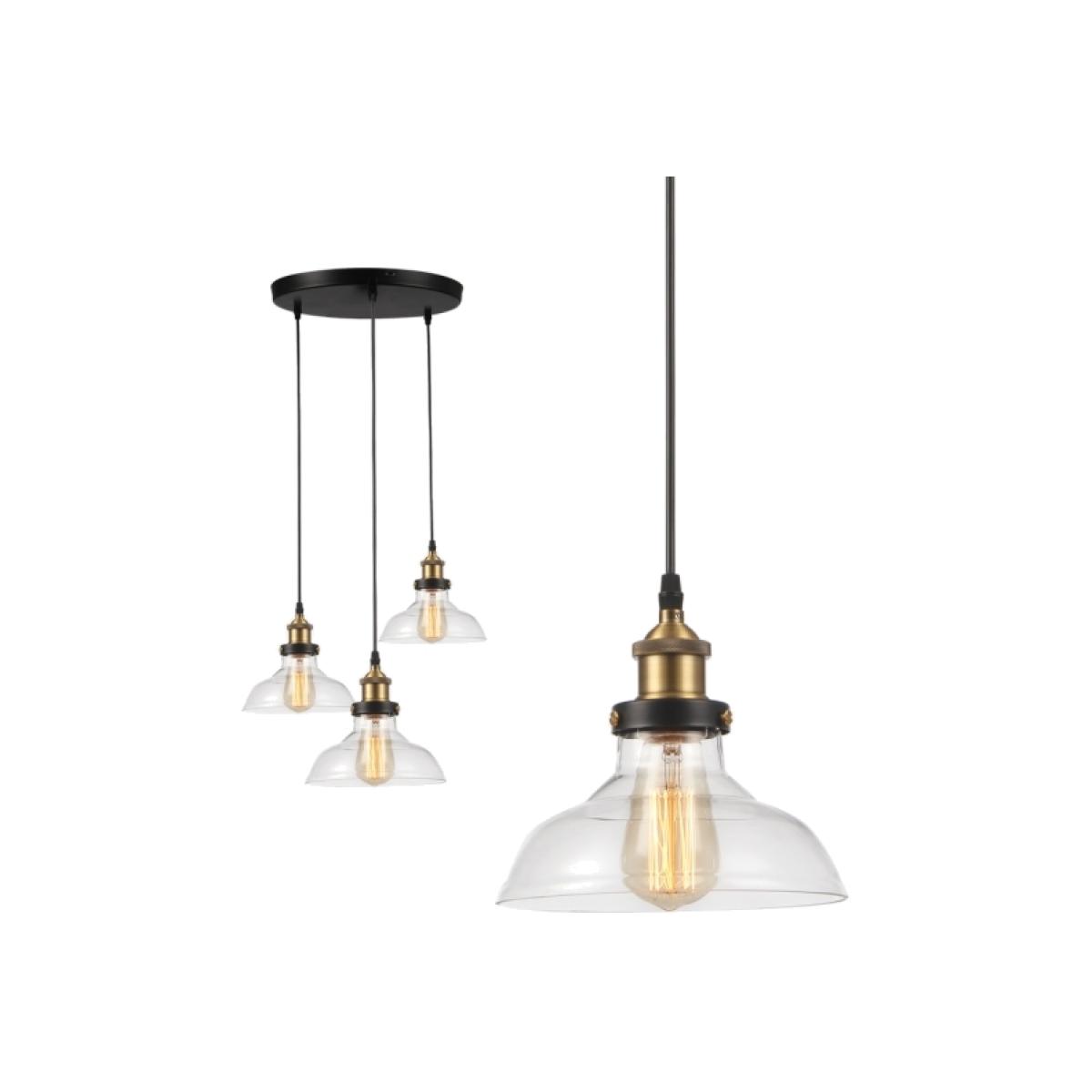 Factory Glass Triple Pendant Light, Brass Colour: Clear