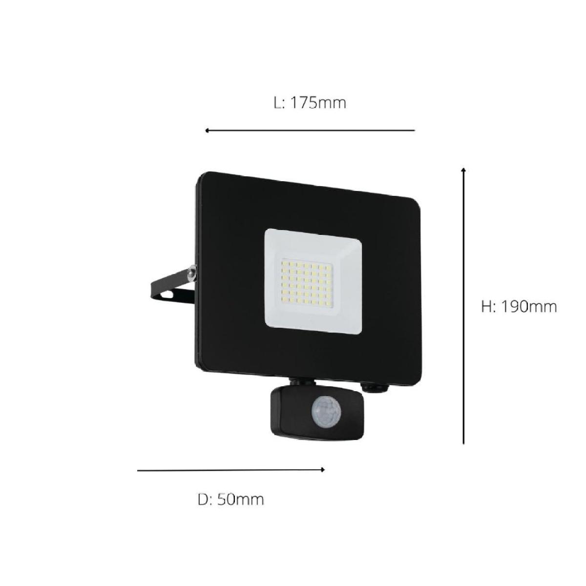 Faedo 3 30W PIR LED Daylight Floodlight IP44 Black