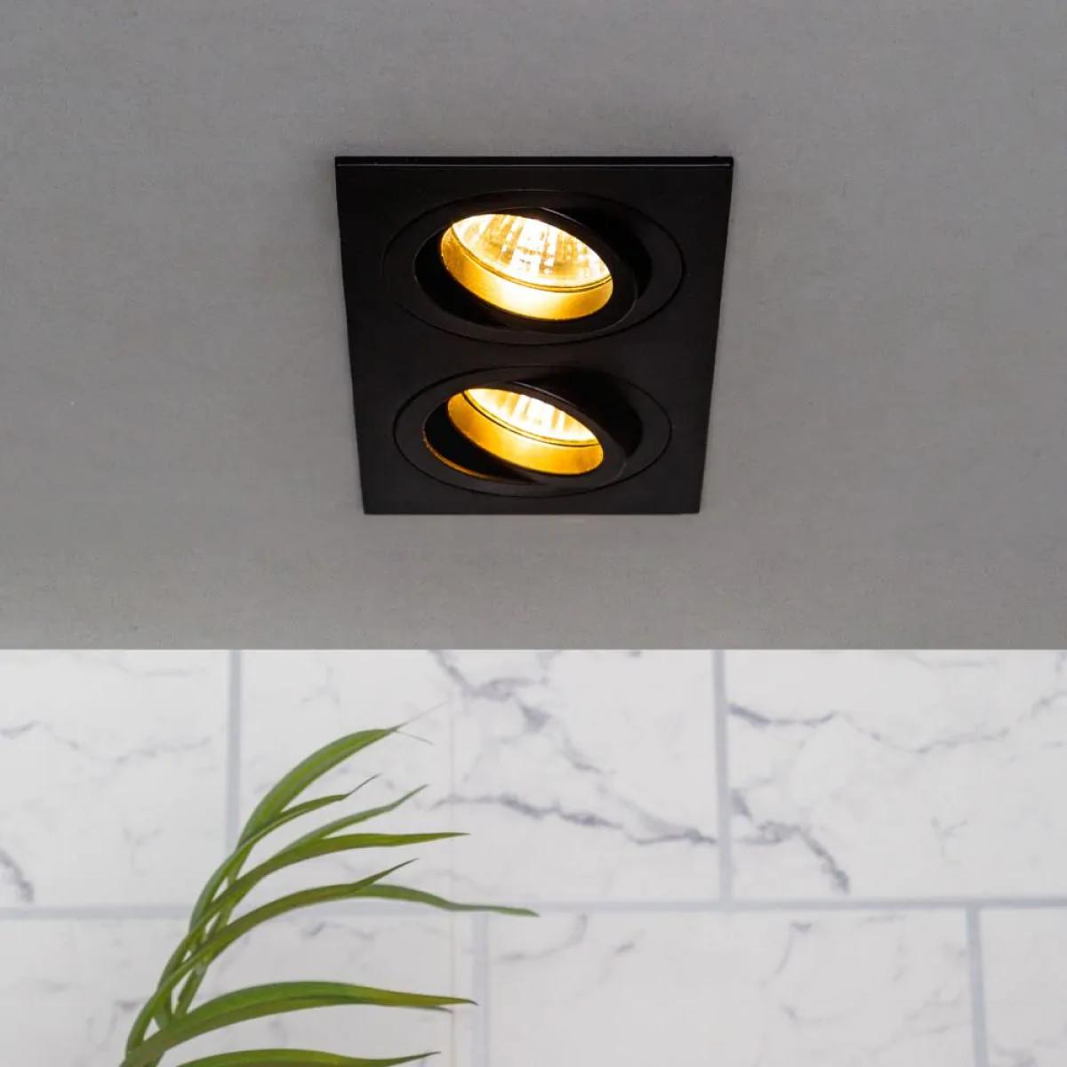 Modern lighting styles for scandi homes with the Faina Double Square Recessed Downlight. This spotlight comes in a sleek matte black finish for an urban aesthetic and has a double spotlight design. It also has a rectangular shape and both spotlights are tiltable, allowing you to shine light in any direction of your choosing, making it ideal for task lighting with kitchen counter tops.