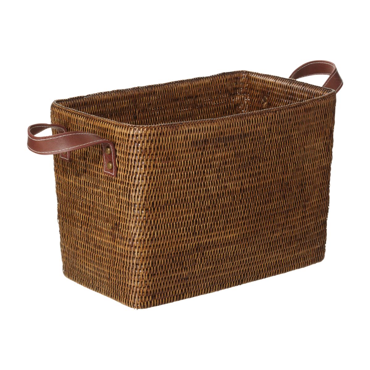 Woven from rigid rattan and finished with smart leather carrying handles, our small Fairfax Basket is perfectly sized to hold magazines by an armchair, or to store newspapers or kindling by the fire. More curvaceous than some of our other rattan baskets, and with distinctive leather handles, this is a really attractive storage solution. Fairfax Rattan Basket, Small - Brown