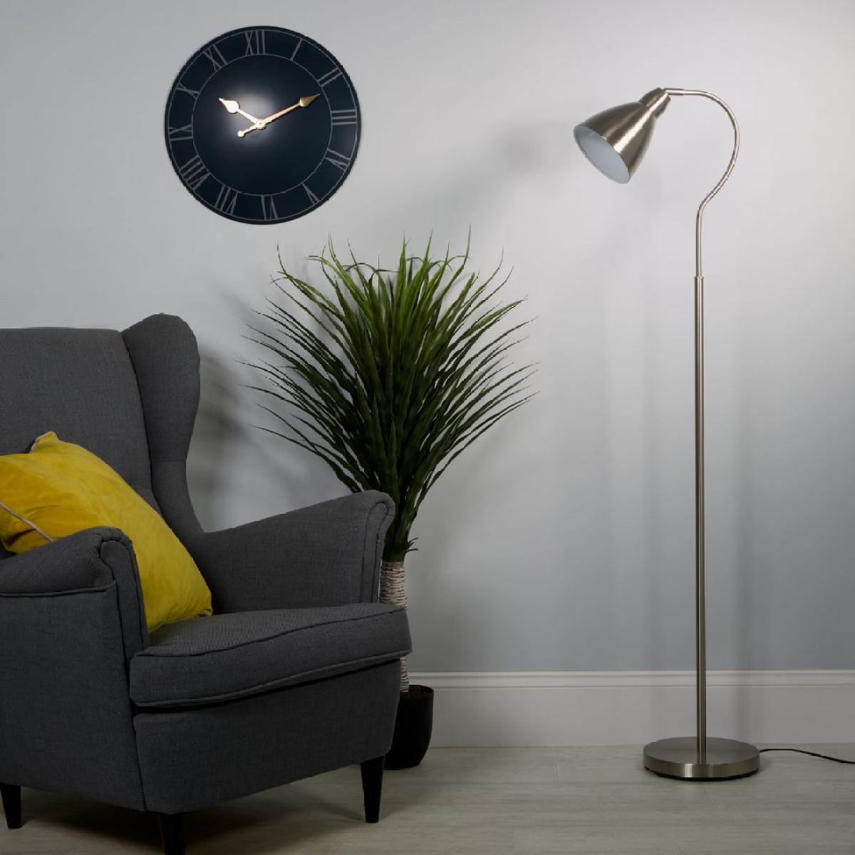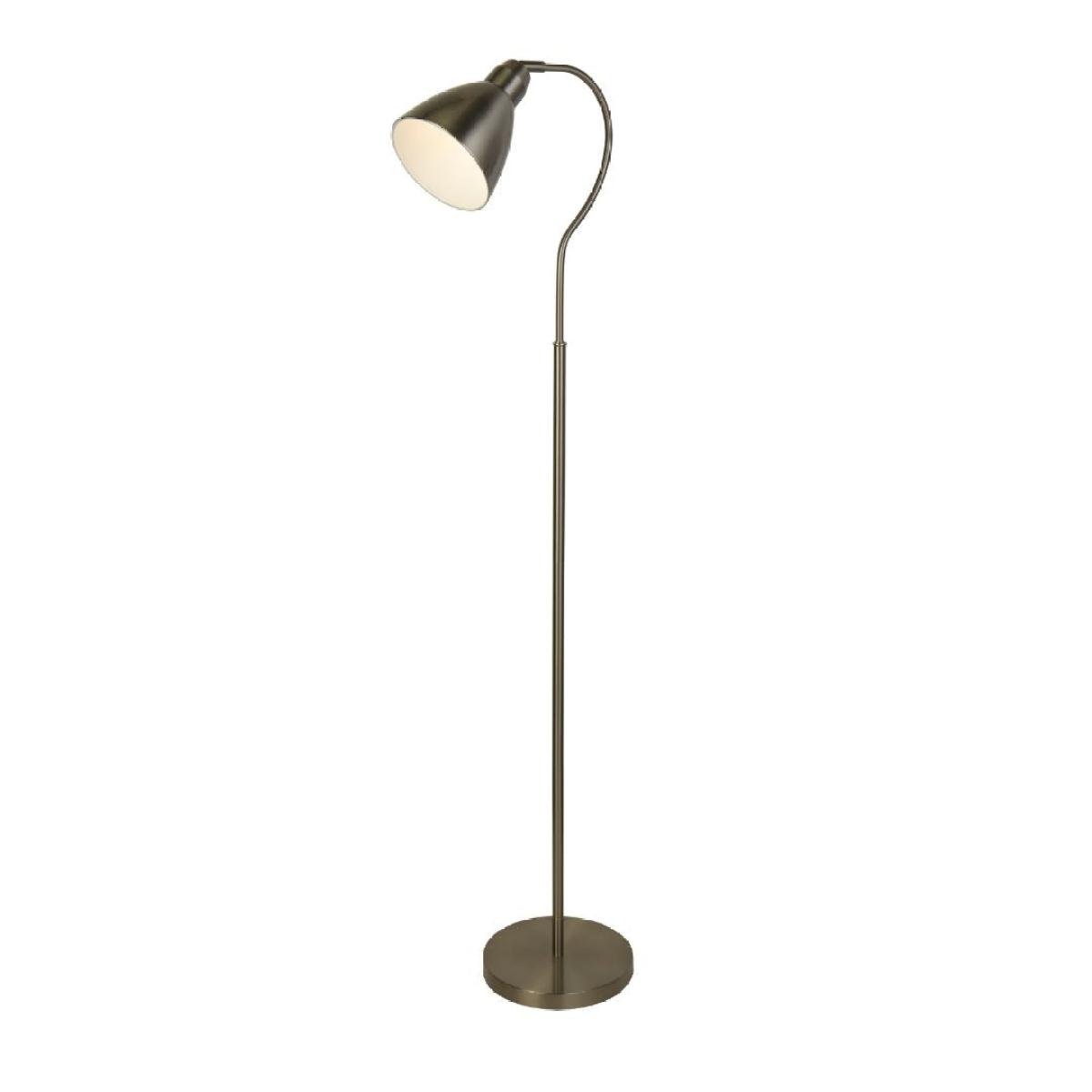 Fairfax 1-light floor lamp, featuring a traditional design, an adjustable lamp head and a satin silver finish. A striking addition that combines vintage charm with modern functionality, this floor lamp features an antique brass finish, adding a touch of timeless elegance and industrial flair. The adjustable head allows you to direct the light precisely where you need it, making it perfect for reading nooks, living rooms or home offices. The Fairfax floor lamp not only illuminates your space effectively but also enhances your decor with its stylish design. Its blend of antique brass fininsh and contemporary design makes it a versatile piece that complements a variety of interior styles, from industrial to modern. Fairfax 1-light floor lamp, featuring a traditional design, an adjustable lamp head and a satin silver finish. A striking addition that combines vintage charm with modern functionality, this floor lamp features an antique brass finish, adding a touch of timeless elegance and industrial flair. The adjustable head allows you to direct the light precisely where you need it, making it perfect for reading nooks, living rooms or home offices. The Fairfax floor lamp not only illuminates your space effectively but also enhances your decor with its stylish design. Its blend of antique brass fininsh and contemporary design makes it a versatile piece that complements a variety of interior styles, from industrial to modern.