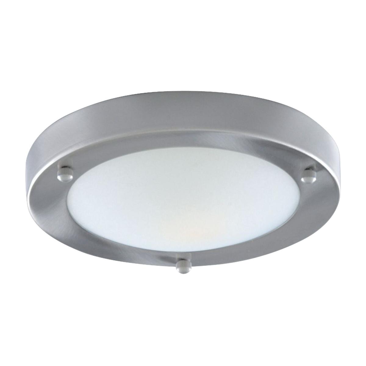 This satin silver flush fitting with domed opal glass diffuser creates a subtle yet bright source of light for your bathroom ceiling. The domed opal glass diffuser creates an attractive lighting effect, and the satin silver finish trim completes the look of this simple, elegant design. And this flush fitting is IP44 rated and fully splashproof.