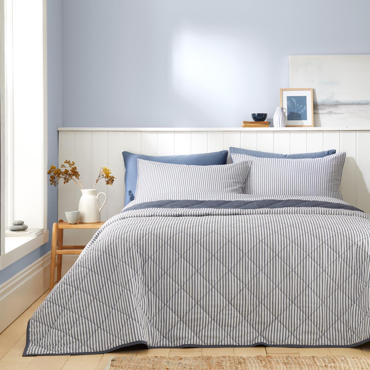 The Fairford bedspread is a great choice for adding a smart, understated layer to your bedroom. I love how its subtle stripe pattern and neutral palette make it versatile enough to suit both traditional and contemporary interiors. It works particularly well in coastal or minimalist schemes, where it can add a touch of pattern without overwhelming the space. For practical styling, layer it over crisp white or soft pastel bedding, and complement it with simple cushions or throws in coordinating shades for a cohesive look. Its straightforward design also means it’s easy to keep looking fresh and inviting, making it both a stylish and functional addition to any bedroom.
