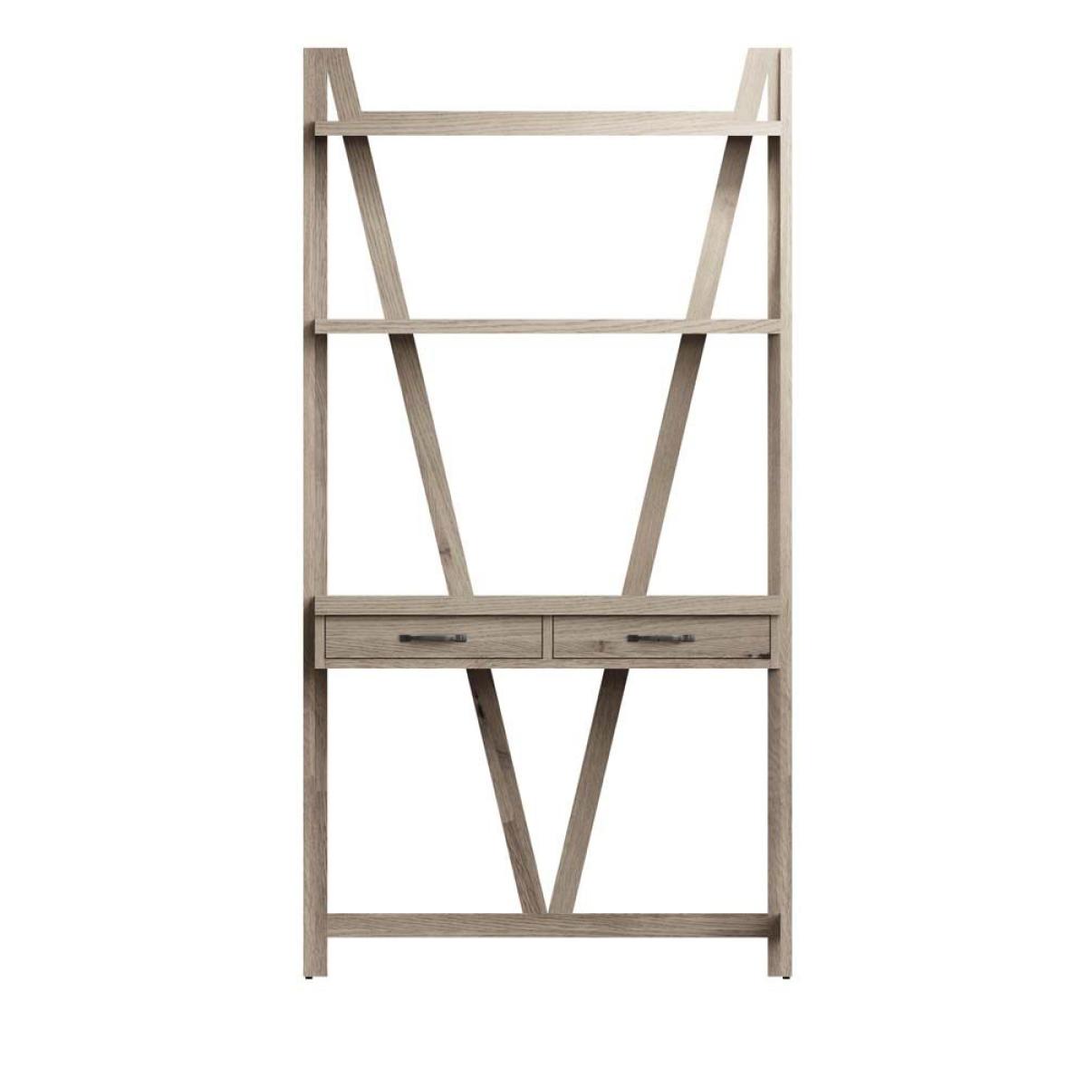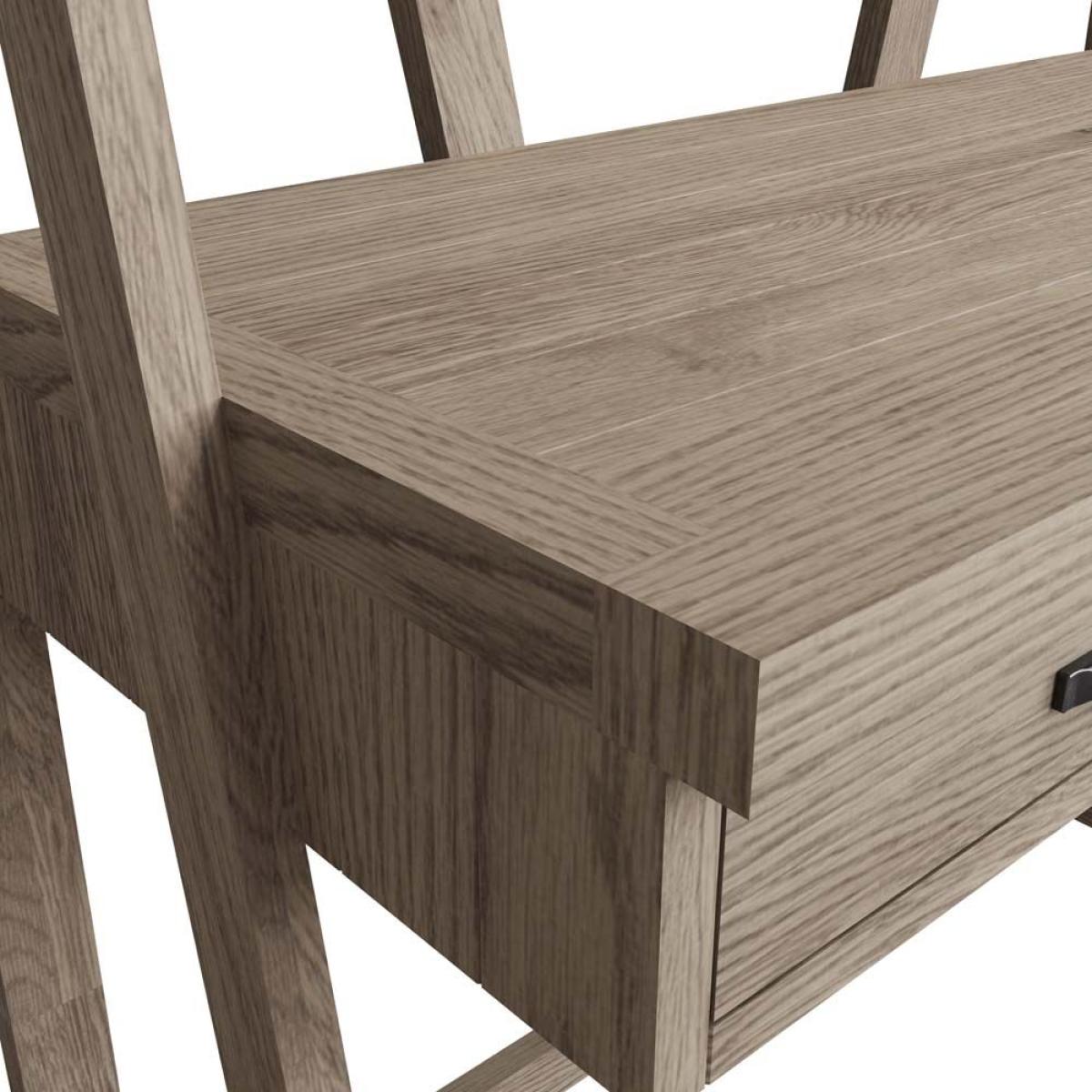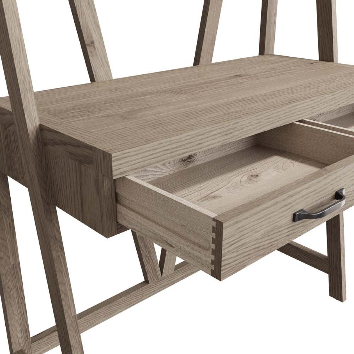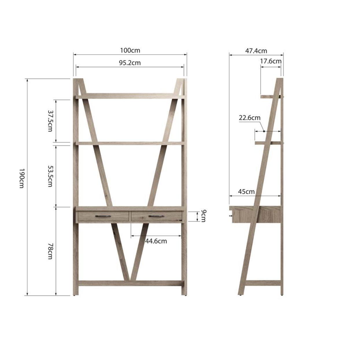 The Fairford Desk Bookcase is the perfect solution for the home office. The rustic design really shows off the timber construction and offers a great workspace complete with two pewter handle-fronted drawers for storage. Above the desk are two shelves for further storage or decor. The bookcase is flanked on each side by timber struts washed in the signature grey of the range, and built from solid oak and oak veneers. Dimensions: W100cm x H190cm x D47.5cm. Built from oak and oak veneers. Two Shelves Simple Self Assembly