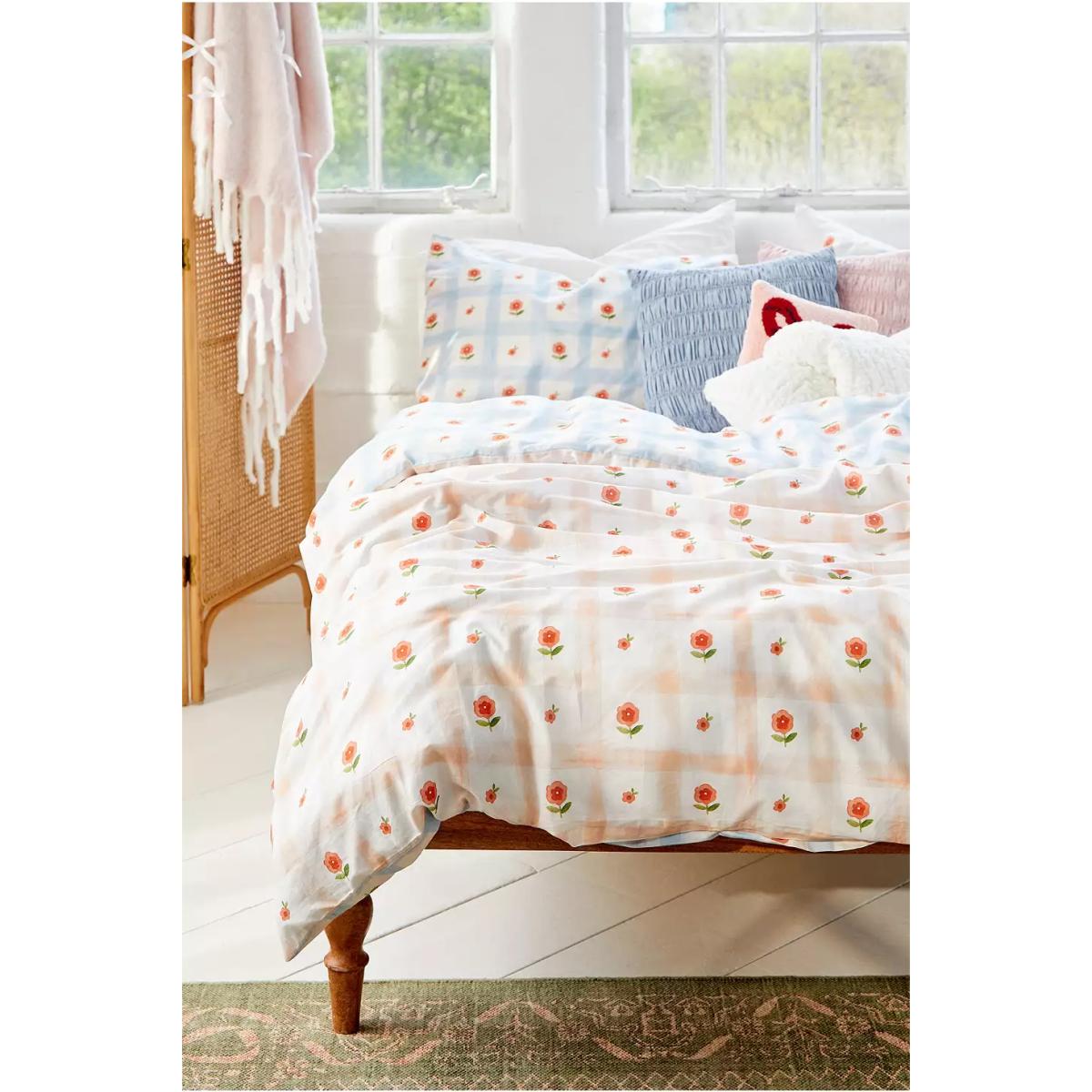 Fill your space with the feel of summer with this pretty duvet set crafted from super soft cotton. Features pressed a checked print and ditsy floral motifs with matching pillowcases. **Content + Care** \- 100% Cotton \- Machine wash **Size** \- Single (includes 1 pillowcase): 135cm (W) x 200cm (H) \- Double (includes 2 pillowcases): 200cm (W) x 200cm (H) \- King (includes 2 pillowcases): 230cm (W) x 220cm (H)