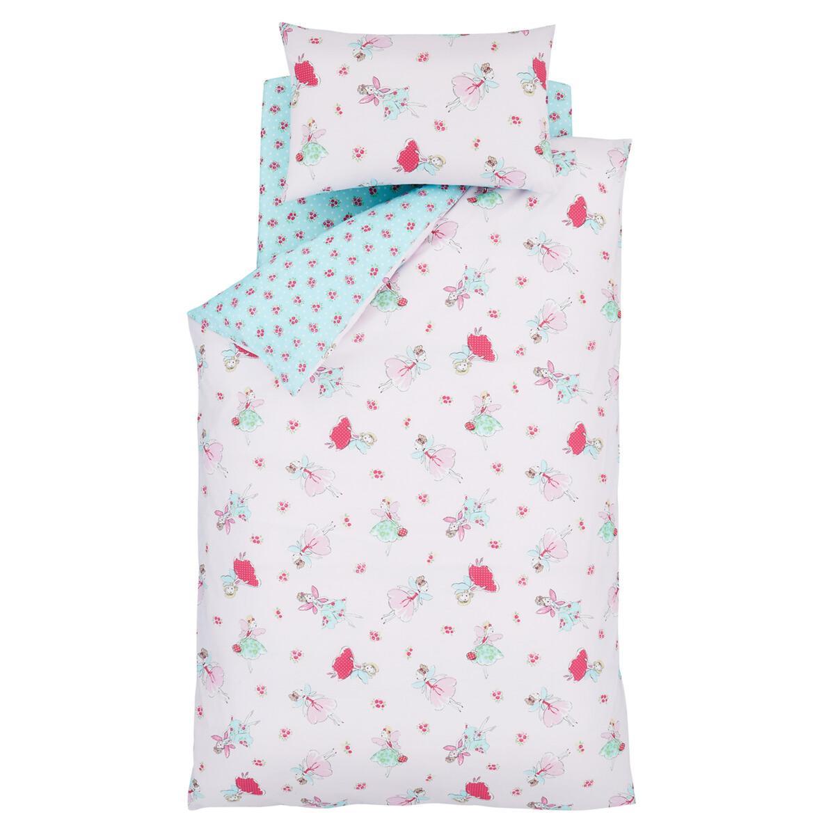 Send your little one to sleep dreaming of a faraway fairy kingdom with this pretty duvet set. The pale pink background is dotted with delicate fairies and beautiful pink flowers. The reverse contrasts the main design, with a vibrant blue background decorated with bolder flowers. Create a magical fairy wonderland by pairing with the matching fitted sheet and curtains. This duvet set is fully reversible with a button fastening. Made from 60% Cotton and 40% Polyester. Machine Wash at 40 degrees. Junior and Single Duvet Sets include 1 duvet cover and 1 pillowcase. This product will be dispatched by one of our trusted suppliers. You’ll be contacted by their selected courier about your delivery.