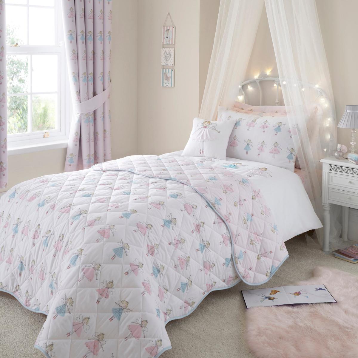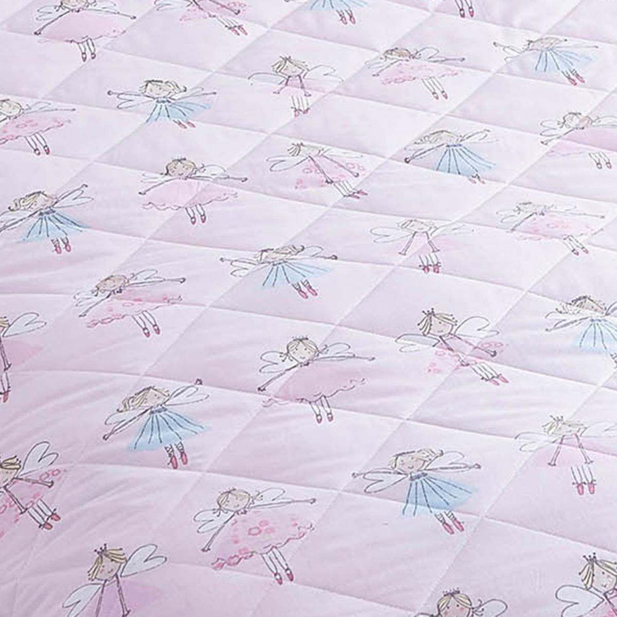 Decorated with a reversible fairy pattern on a lilac background, this machine washable bedspread is crafted from a blend of cotton and polyester for softness and durability and is finished with blue piped detail. This collection is verified by OEKO-TEX® and independently tested for harmful substances as well as manufactured using sustainable processes under socially responsible working conditions. MADE IN GREEN by OEKO-TEX® is a unique product label to trace the countries and production facilities - search the product label for more information on. Here.