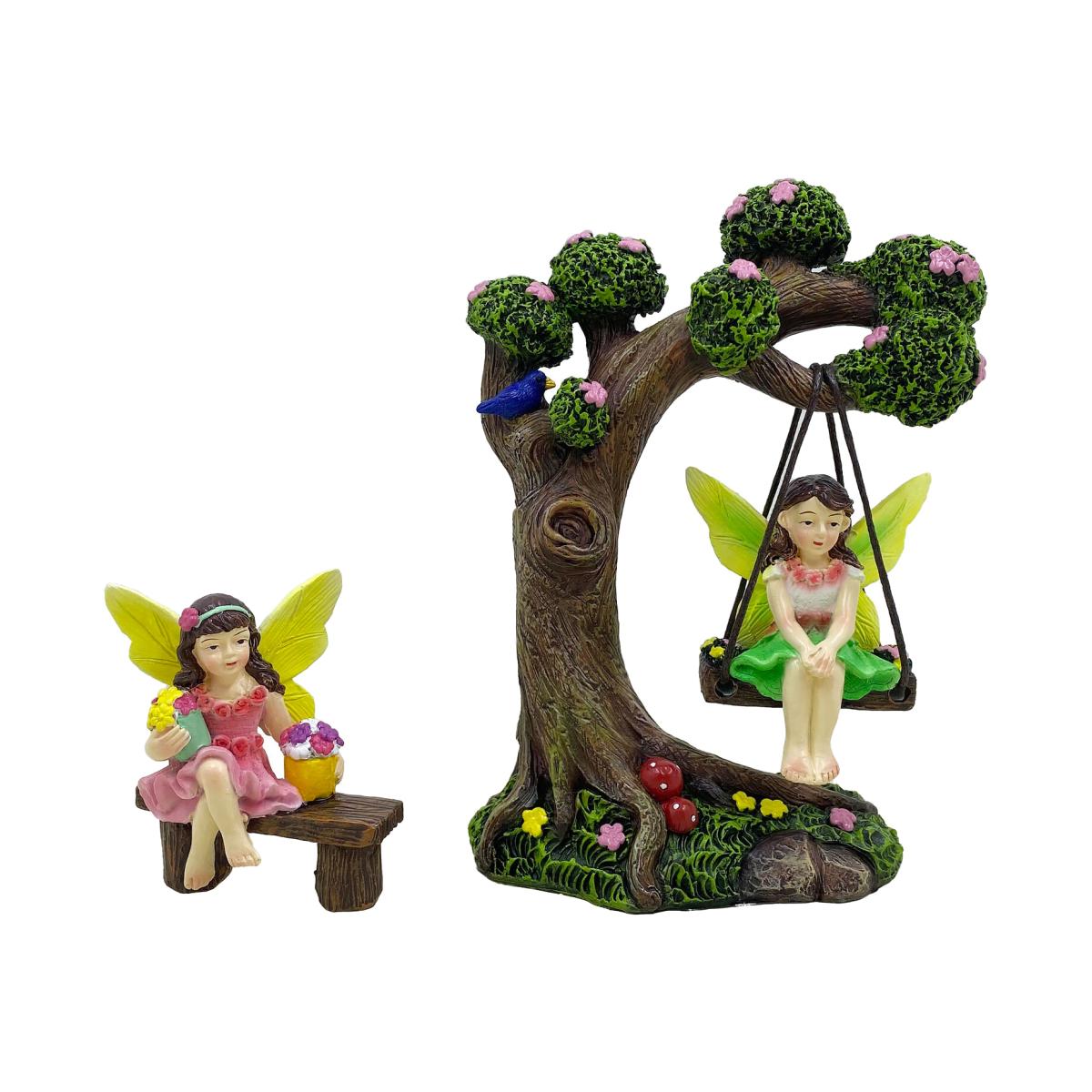 Add a touch of fairytale magic to your garden with this sensational Fairy on Bench and Swing. This beautiful ornament features two fairies, one sitting on a bench and the other on a swing, both with vibrant and intricate detailing. Perfect for adding a pop of colour to your patio, lawn or flower beds, this decoration will add a fun and whimsical touch to your space. Fairy on Bench and Swing