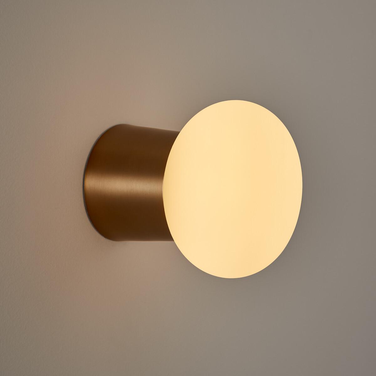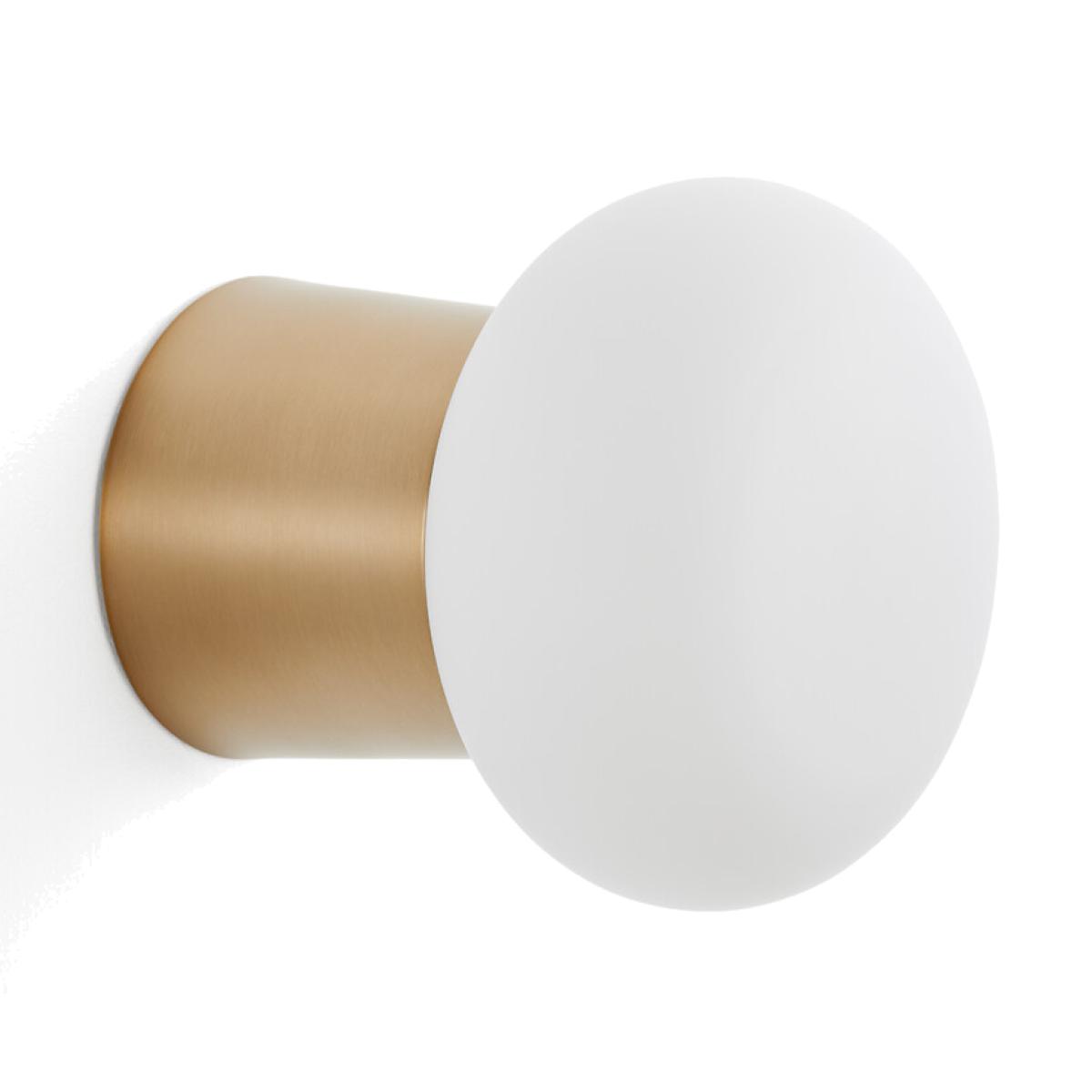 An organic shape for wall or ceiling mounting... the Faith wall lamp diffuses a light close to that of daylight, soothing. Compliant with outdoor standards, Faith can be installed outdoors or in a bathroom. A design by AMPM.Product Details • Iron and aluminium base with champagne-coloured epoxy finish • Matte opal glass shade • E14 socket for 4W max bulb, not supplied. Quality Info The IP44 standard guarantees enhanced protection against splashing water and dust. Light fittings with this standard are suitable for damp rooms. Dimensions • Diameter: 16cm • Height: 18cm. Dimensions and weight of parcel • L22 x H22 x D27.5cm • 1.6kg