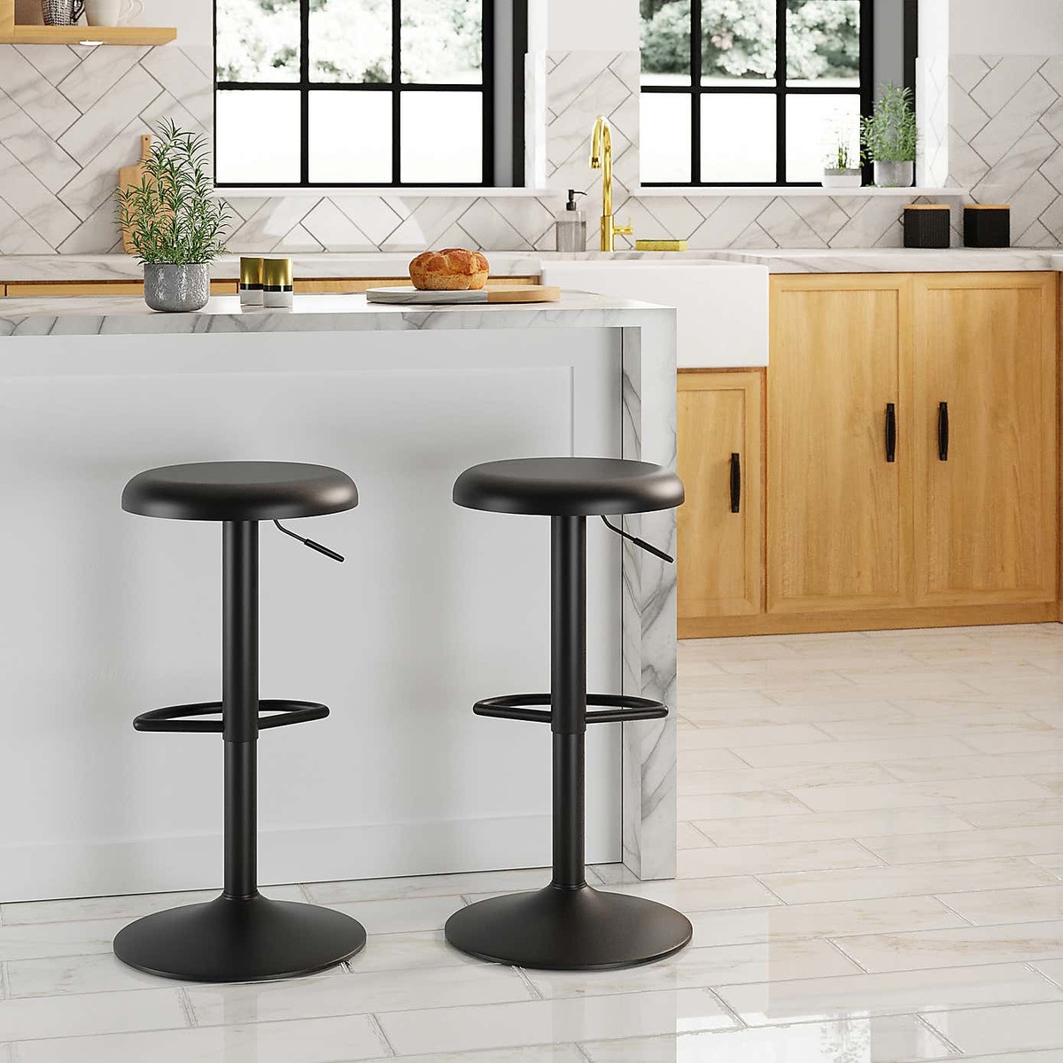 I love this black bar stool for its sleek, minimalist design that blends well with contemporary and industrial interiors. Its streamlined silhouette makes it versatile enough for home bars, kitchen islands, or commercial spaces. To style it effectively, pair it with monochrome or metallic accents, and consider adding textured cushions for comfort. Practical tips include using it in spaces with a high stool height to maximise functionality, and its all-black finish ensures it hides minor scuffs, making it a durable choice for everyday use. It’s especially effective in spaces where a modern, understated look is desired.