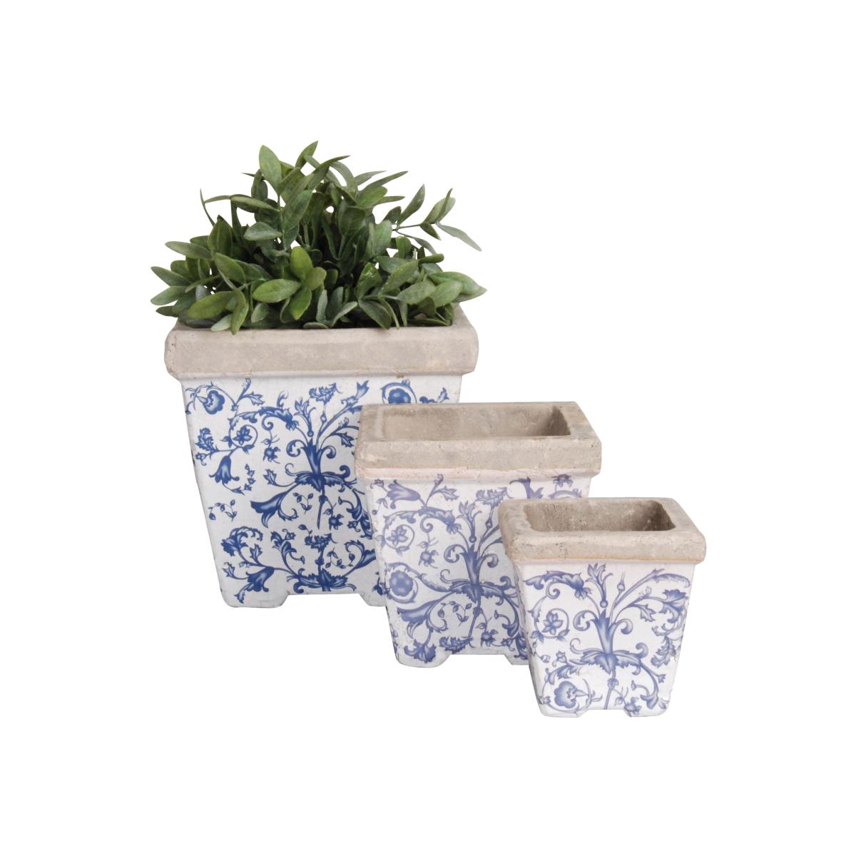 Small Pot Dimensions 10.3 x 10.3 x 10.7 cm Medium Pot Dimensions 14.3 x 14.3 x 10.3 cm Large Pot Dimensions 20 x 20 x 19.2 cm. This set of 3 ceramic flowerpots feature an eye-catching aged ceramic print. The pots are practical has a classic square shape and features a large opening so your plants get all the room they need. Features. Stunning aged ceramic print Set of 3 eye catching plant pots. Small pot holds 0.5 litres. Medium pot hold 1.7 litres. Large pot hold 4 litres. Assembly not required..