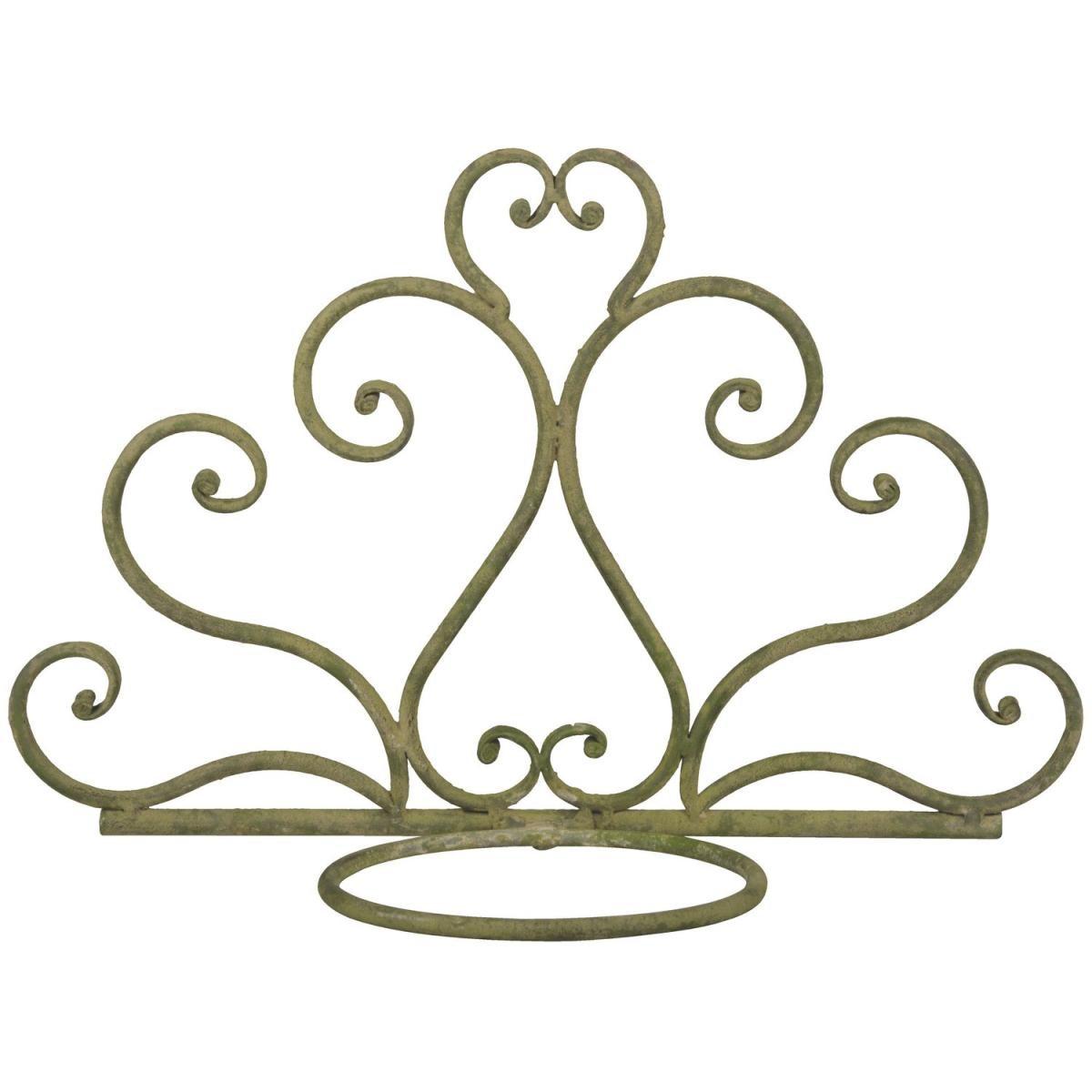Dimensions 32.6 x 14.3 x 31.3 cm. This Aged Metal Green Flower Pot Holder will bring a natural serene and authentic atmosphere to the garden. Features. Stunning aged flower pot holder. Inner ring size is 11.8 cm Thepot holder will fold away when not in use. Material Aged metal. Weathered material in this decorative piece Assembly not required..