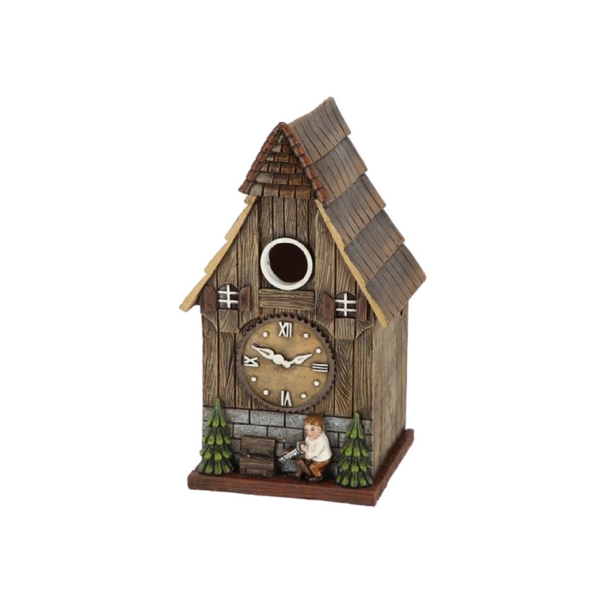* Cuckoo clock design * Birds house * Made from wood Inspired by classic timepieces, the Esschert Design Cuckoo Clock Bird House is a whimsical yet functional nesting spot for small birds. With proper ventilation, an easy-to-clean base, and a clever keyhole mounting system, it's perfect for blue tits and other small species.