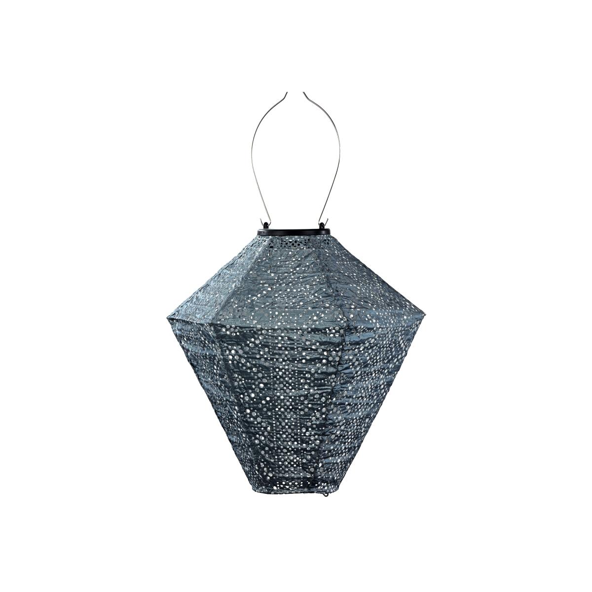 * Solar powered * Blue/grey colour * Intricate pattern Add a soft glow to your outdoor space with this handmade solar lantern, featuring a detailed diamond lace design in a beautiful blue-grey shade. Built to withstand the elements, the lantern is made from Tyvek material, ensuring it's tear-resistant, weatherproof, and fade-proof. The durable solar unit offers reliable performance, even in challenging weather conditions. For easy hanging, the lantern comes with a convenient hook, ideal for gardens, patios, or balconies. Simply wipe clean to keep it looking its best all year round.
