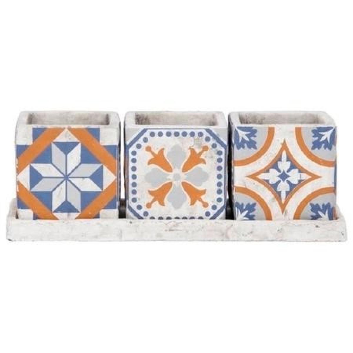 Dimensions 35.8 x 13.7 x 12.3 cm. This set of Portuguese Tiled 3 square pots on a tray are practical but stylish. They have a classic square shape and features a large opening so your plants get all the room they need. Features. Stunning 3 flower pots. Eye catching style Portuguese inspired design Material Concrete The perfect statement plant pots. Assembly not required..
