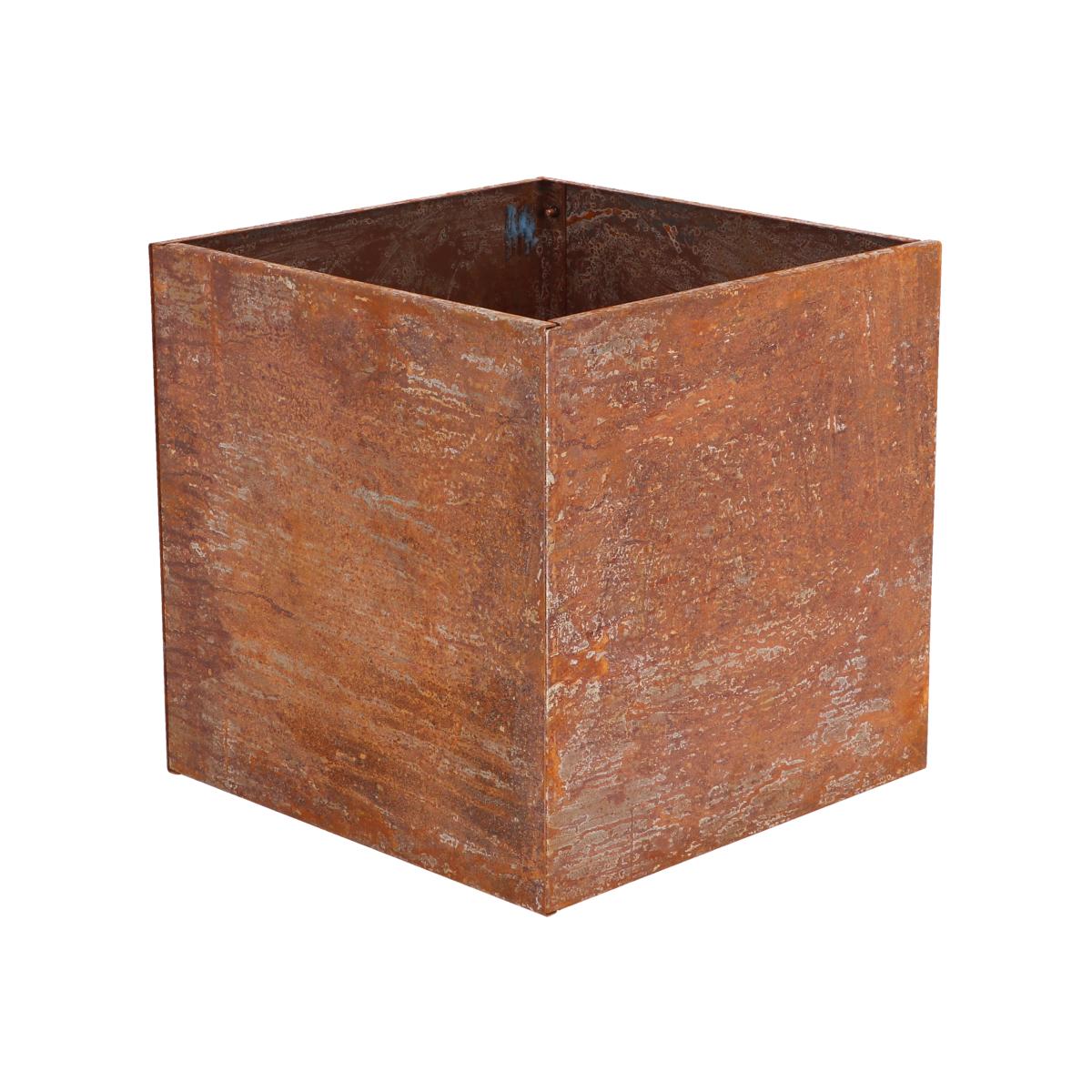 * Corton steel construction* Bottom included* Flatpack with full-color sticker* Will rust further due to weather influence* Made in Europe Embrace rustic charm with the Fallen Fruits Square Rust Planter, crafted from Corton steel and designed to weather gracefully over time, complete with a bottom plate and easy assembly for a distinctive addition to your garden landscape.