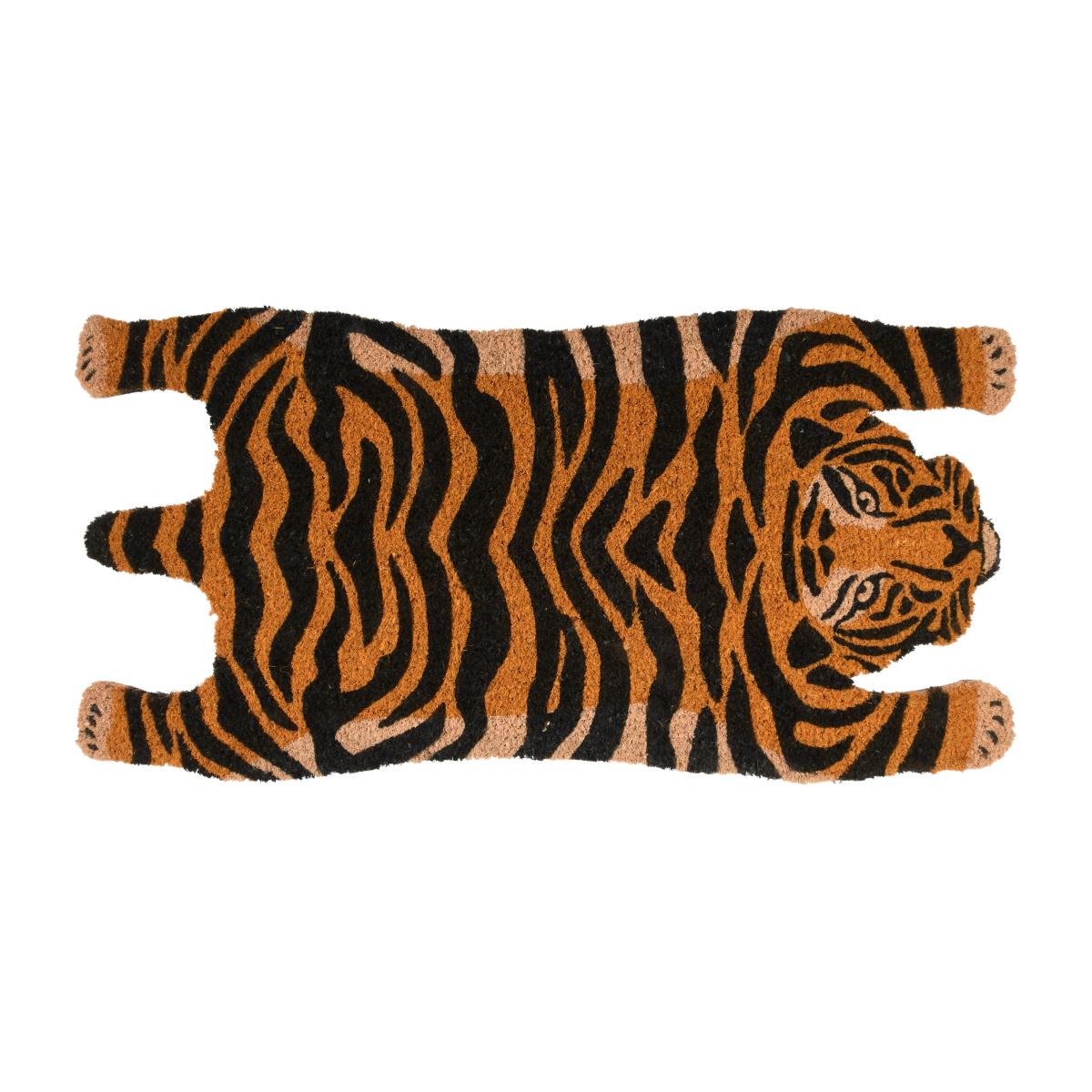 * Tiger Shaped* Made From Coir* Anti-Slip* PVC Backing Make a bold statement with this Tiger Shaped Coir Doormat. Crafted from durable coir with an anti-slip PVC backing, this striking mat adds a touch of the wild to your doorstep.