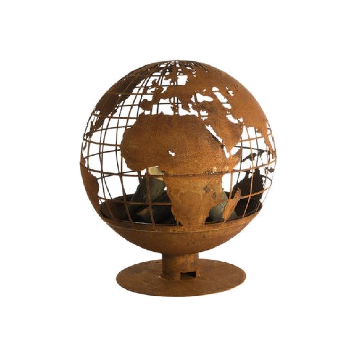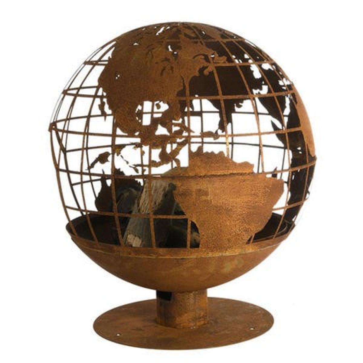 Dimensions 58 x 58 x 66 cm. This fire globe in the garden creates a cosy atmosphere and really catches the eye. This round fire ball has laser cut shapes of the globe which create a beautiful spectacle due to the flames. Features. This round fire ball has laser cut shapes of the globe which create a beautiful spectacle due to the flames. This fire globe will rust caused by fire weather and time which will make the patina even more authentic. Made of high quality materials. Large opening for placing wood Assembly not required..