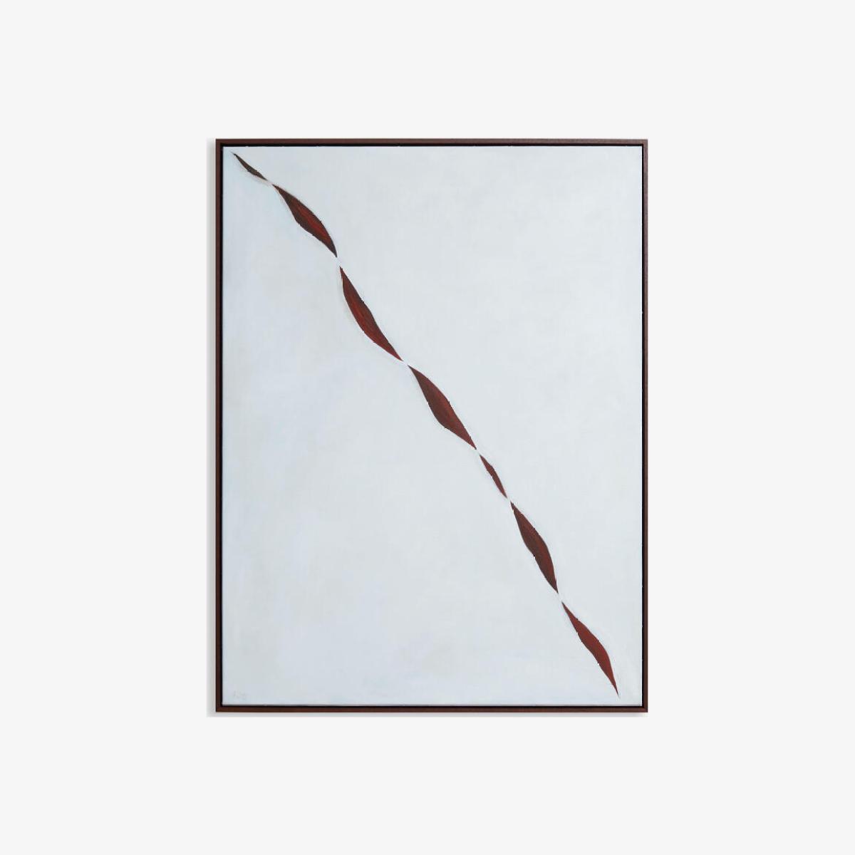 Drawing inspiration from Abstract Expressionism, Studio Earle communicates personal narratives through harmonious geometric and organic shapes. Assembled first as paper-cut models, each artwork is then scaled up onto canvas, as textiles or metalwork wall sculptures. New materials are constantly explored while committing to communicate story through purity of form. 'Falling Silk Red II' by Studio Earle Acrylic on canvas Timber frame Exclusive piece From the M.A.H Gallery collection Includes M.A.H-branded certificate of authenticity