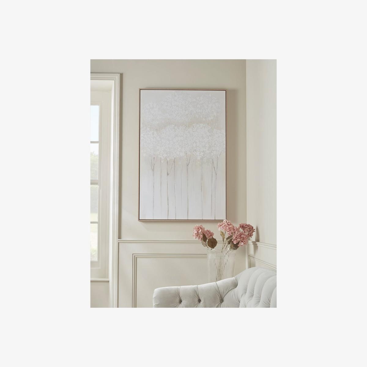 I really like how the falling woodland canvas brings a soft, understated touch of nature into a space. Its neutral colour palette makes it highly versatile, working well in both modern and traditional interiors. It's especially effective in calm, minimalist rooms where it can act as a subtle focal point or in a cosy living area to add a delicate layer of texture. When styling around it, consider pairing with natural fibres like linen or wool, and keep other accessories simple to let the artwork stand out. It’s a great choice for creating a peaceful, zen-like atmosphere without overwhelming the room.