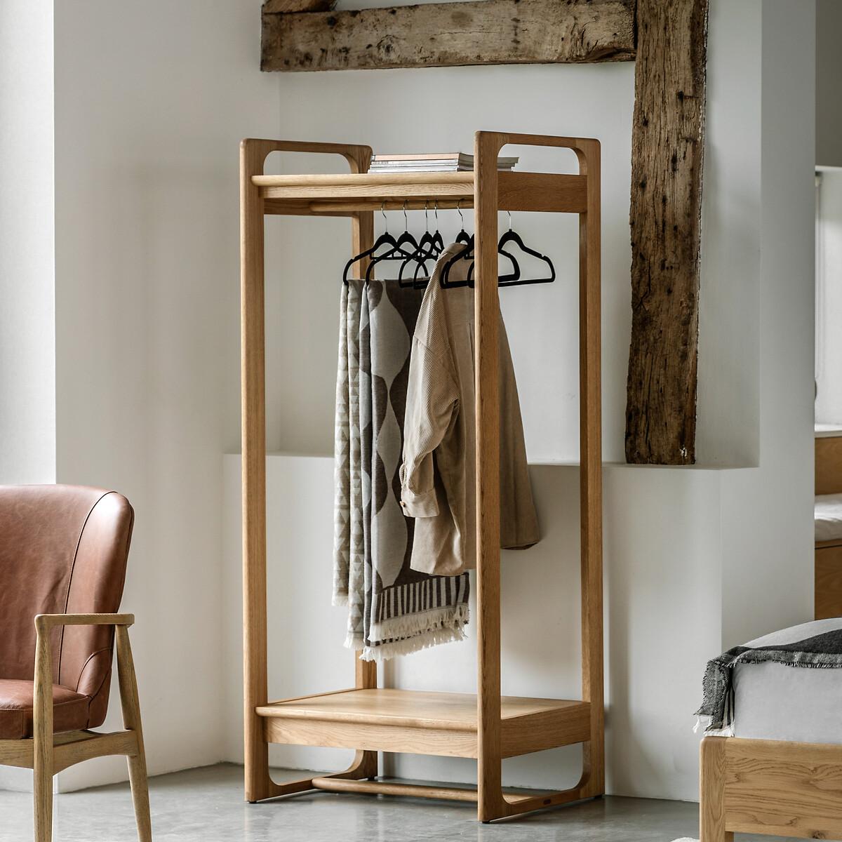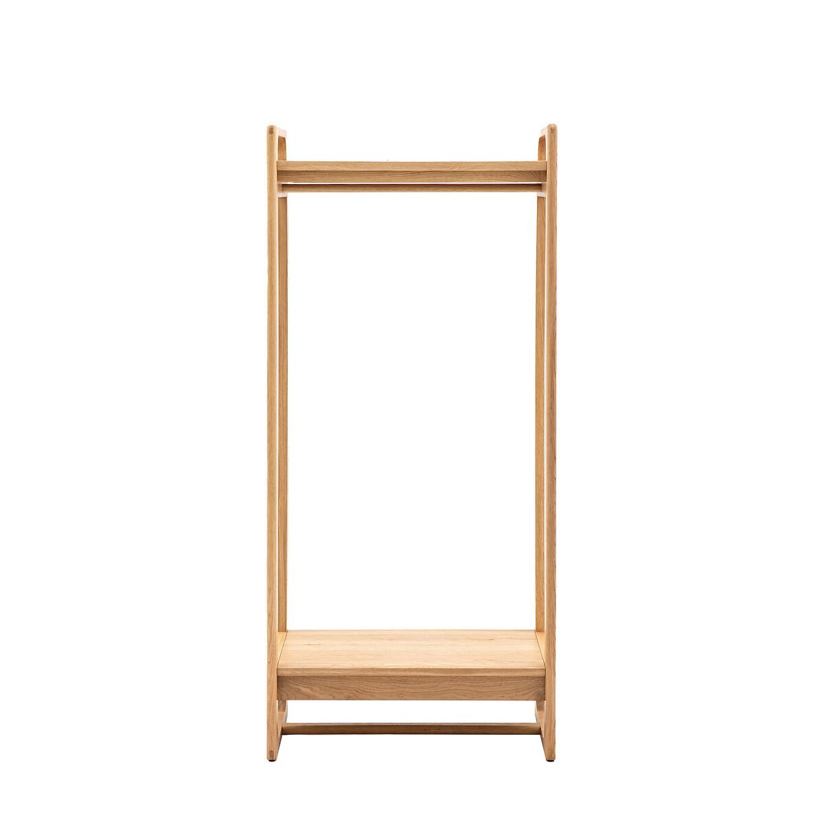Crafted from the finest solid oak and oak veneer. A warm honeyed finish highlights the natural grain of the wood. This open wardrobe features a top and low shelf, along with a hanging rail to give a beautiful storage solution for the hallway or bedroom. Product details • Made from oak - a durable long lasting wood with an attractive grain • Oak is highly resistant to wear and tear and with good water resistant properties, meaning it can easily stand up to the demands of every day life and will look good for years to come. • One fixed shelf • Fixed hanging rail • Anti topple kit included • Full assembly required. Product Composition - Oak 80% / Oak Veneered MDF 20% Product Dimensions - 50 cm x 80 cm x 175 cm , Weight - 29 KGLeg/feet height - 15.2 cm Clearance to floor - 15.2 cm Package Dimensions - 183 cm x 58 cm x 22 cm, Weight 35 kg. This product will be dispatched by one of our trusted suppliers. You’ll be contacted by their selected courier about your delivery. Please note: this product cannot be delivered to all Offshore Islands, Northern Ireland or Republic of Ireland. GALLE01
