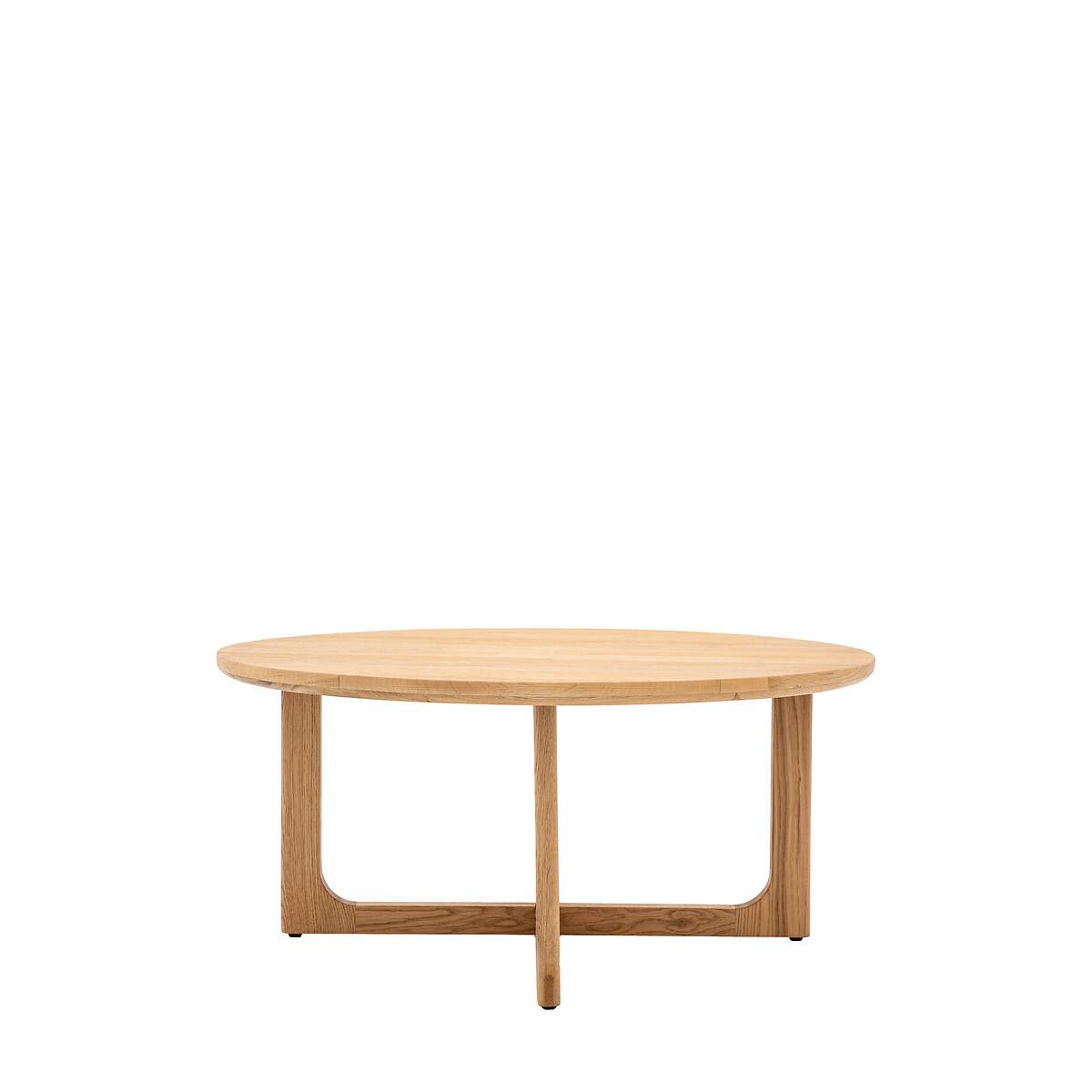 Crafted from premium oak wood, this beautiful coffee table offers elegant design, with its simple round top and gently curving underframe. A warm honeyed finish highlights the natural grain of the wood. Product details • Made from oak - a durable long lasting wood with an attractive grain • Oak is highly resistant to wear and tear and with good water resistant properties, meaning it can easily stand up to the demands of every day life and will look good for years to come. • Cross shaped base • Round table top • Partial assembly required (legs/feet only) Product Composition - Oak Veneered MDF 70% / Oak 30% Product Dimensions - 90 cm x 90 cm x 40 cm , Weight - 12 KGLeg/feet height - 37 cm Clearance to floor - 37 cm Package Dimensions - 97 cm x 97 cm x 12 cm, Weight 15 kg. This product will be dispatched by one of our trusted suppliers. You’ll be contacted by their selected courier about your delivery. Please note: this product cannot be delivered to all Offshore Islands, Northern Ireland or Republic of Ireland. GALLE01