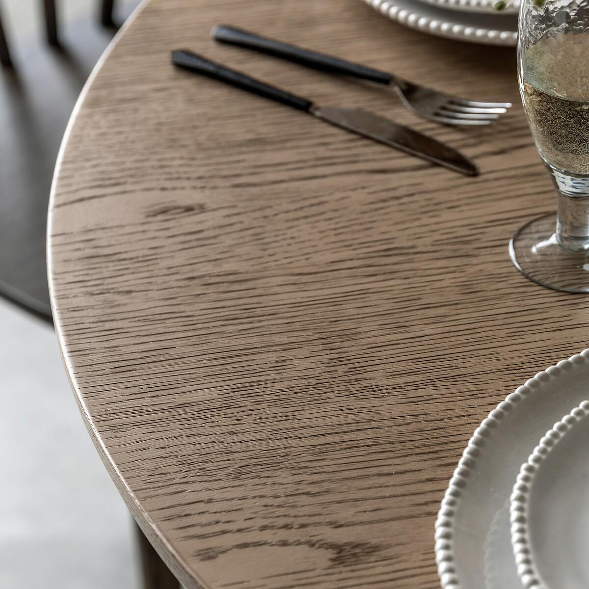 Crafted from the finest oak and structural oak veneers where practical, this stunning dining table offers elegant design, with its simple round top and beautifully shaped underframe. A beautiful smoked oak finish highlights the grain of the wood and adds interest and texture. Product Details:• Made from solid oak wood• Seats 4 people• Partial assembly required • 1 year manufacturers warranty. Product Composition - Oak Veneered MDF 55% / Oak 45% Product Dimensions - 117 cm x 117 cm x 16 cm, Weight 28 kg Table length 110cm. Clearance to floor 72cm. Package Dimensions - 117 cm x 117 cm x 16 cm, Weight 28 kg. This product will be dispatched by one of our trusted suppliers. You’ll be contacted by their selected courier about your delivery. Please note: this product cannot be delivered to all Offshore Islands, Northern Ireland or Republic of Ireland.